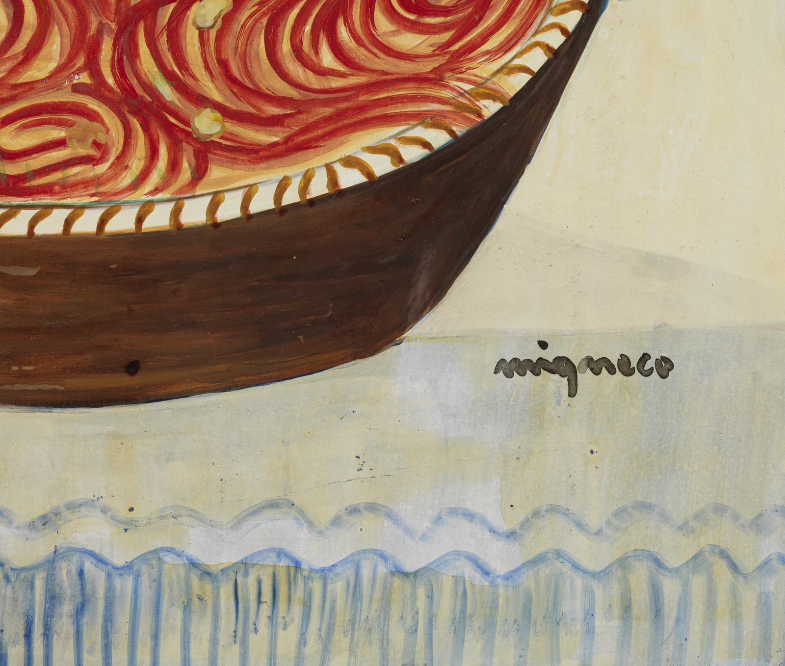 MIGNECO GIUSEPPE (1908 - 1997) Senza titolo. Olio su carta. Cm 50,00 x 70,00. Firma in basso a destra. Opera archiviata presso l'Archivio Giuseppe Migneco - Grazia Migneco, Milano, come da documentazione fotografica allegata all'opera riportante il relativo numero d'inventario.