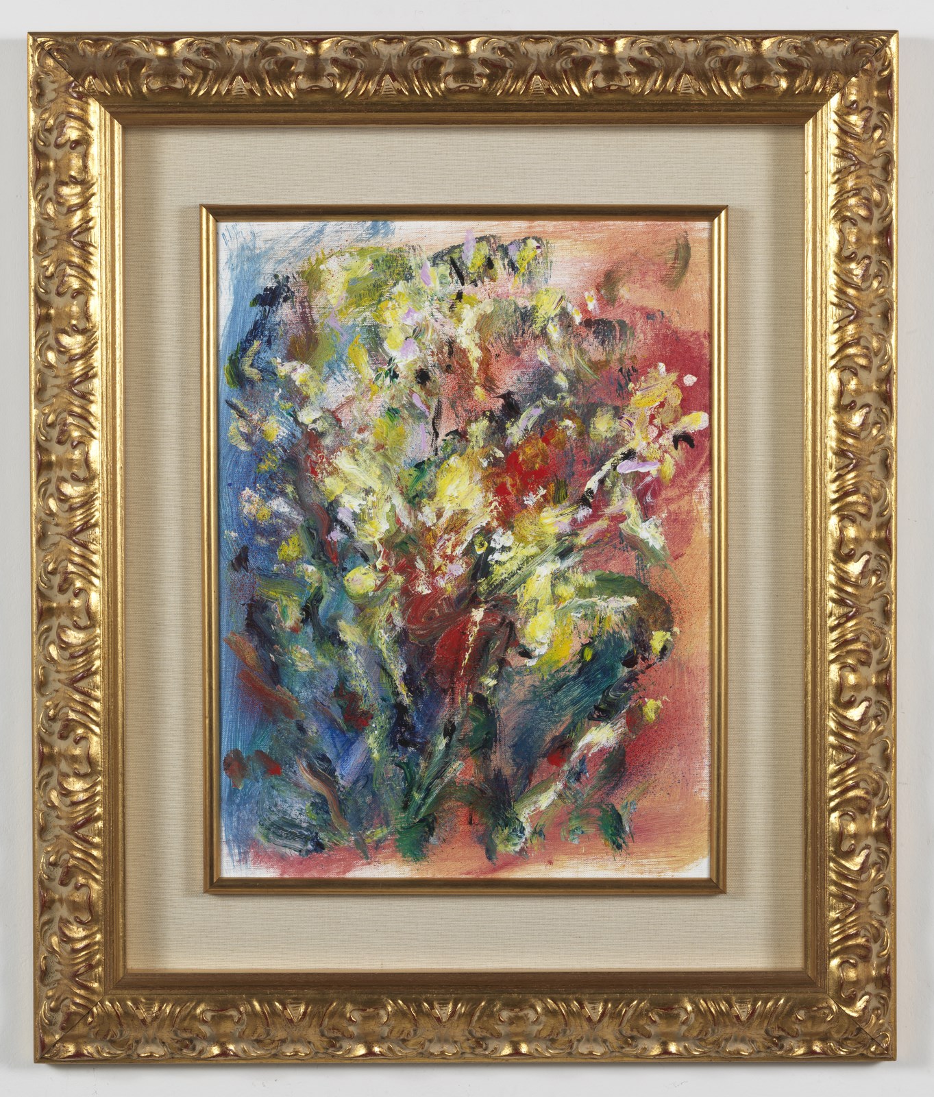 TRECCANI ERNESTO (1920 - 2009) Fiori. Olio su tela . Cm 30,00 x 40,00. Firma al retro. Autentica dell'artista su fotografia. . Cornice presente