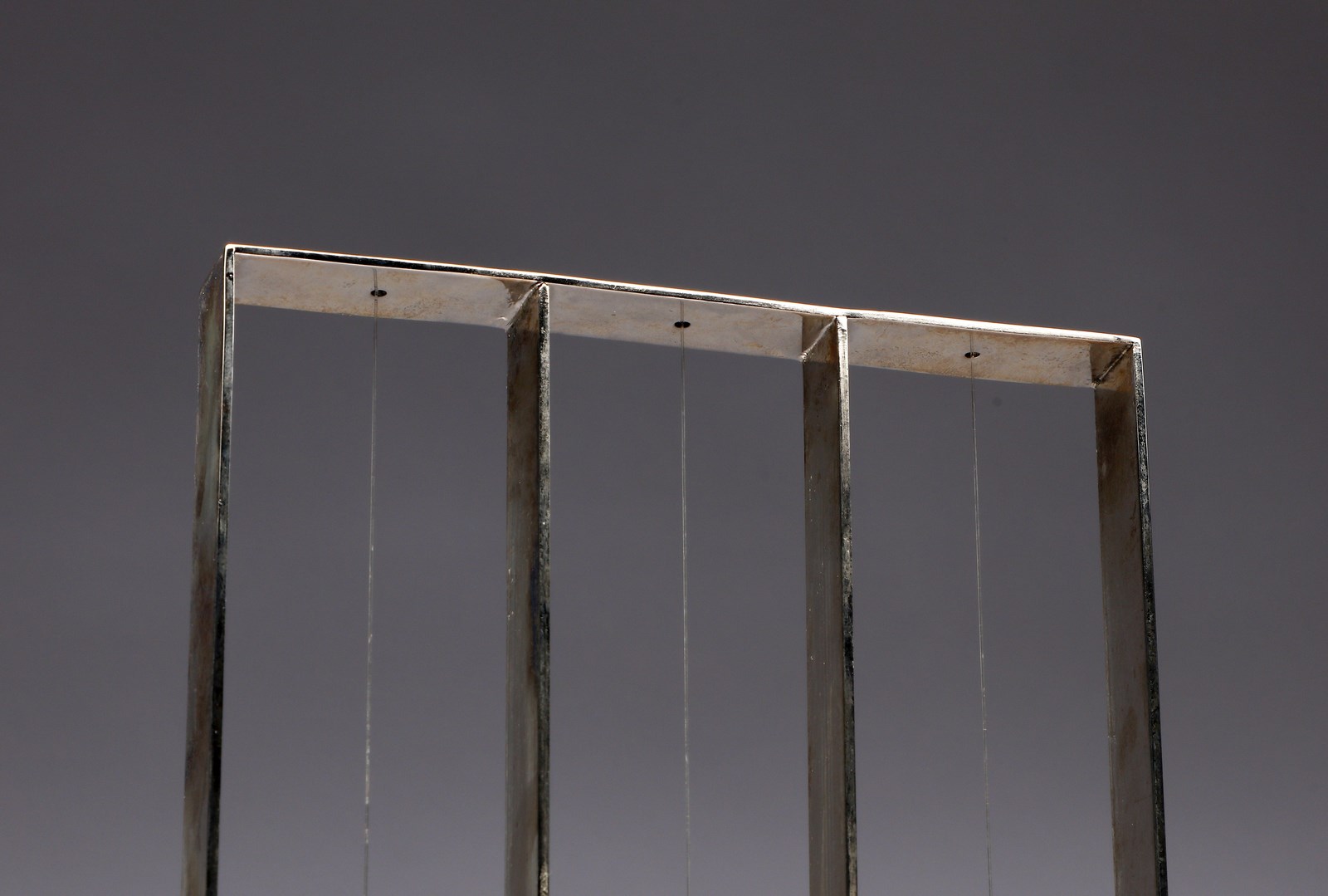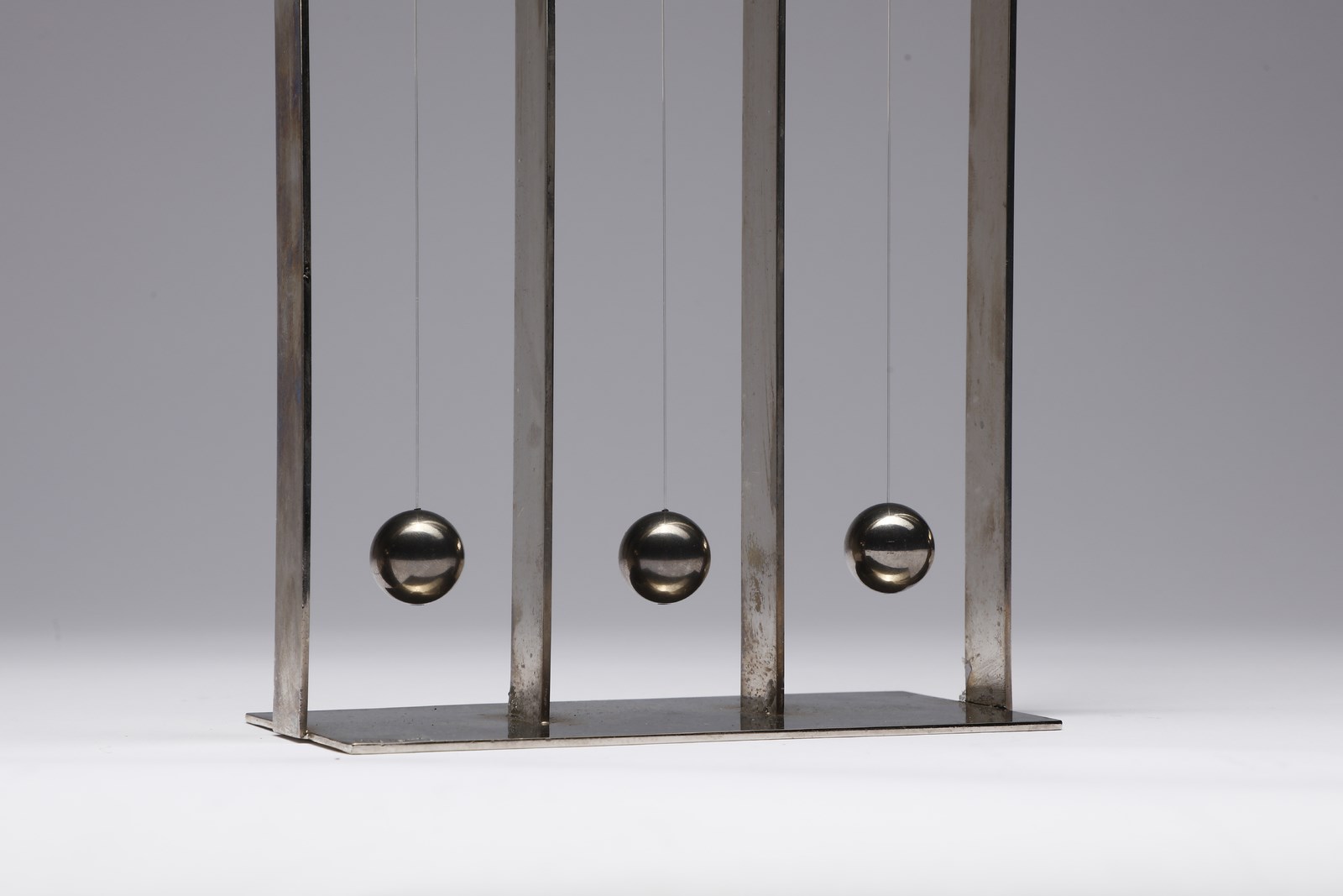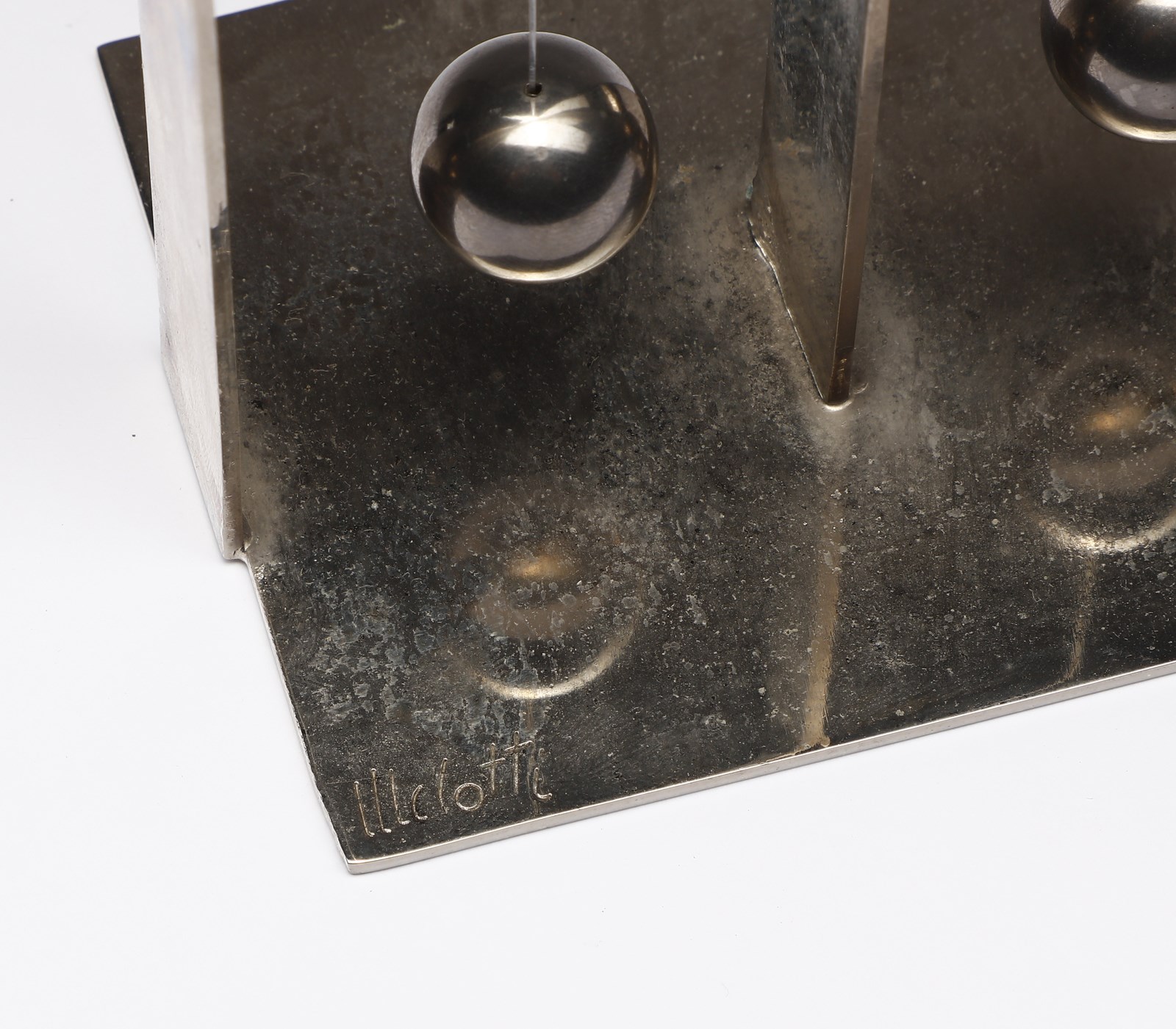 MELOTTI FAUSTO (1901 - 1986) Scultura A (I Pendoli). Acciaio. Cm 15,00 x 40,00 x 8,00. 106/500. Tiratura e firma incisa in basso. Opera concepita nel 1968 e realizzata nel 1971. Pubblicazioni: Catalogo Nazionale della scultura n. 4, Milano 1980, p. 193 (altro esemplare illustrato); Bolaffi. Catalogo della scultura italiana n. 5, Milano 1981, p. 129 (altro esemplare illustrato); G. Celant, Melotti. Catalogo generale. Tomo primo Sculture 1929-1972, Milano 1994, vol. I, p. 213, n. 1968 30 (altro esemplare illustrato, con dimensioni errate). Esposizioni: Bolzano, Galleria d'arte Il Sole, Melotti, 1974, cat. (altro esemplare esposto); Salò, Centro d'Arte Sant'Elmo, Fausto Melotti, 1983 (altro esemplare esposto); Milano, Biblioteca Comunale e Museo di Milano, Scheiwiller a Milano 1925-1983. Immagini e documenti, 1983 (altro esemplare esposto)