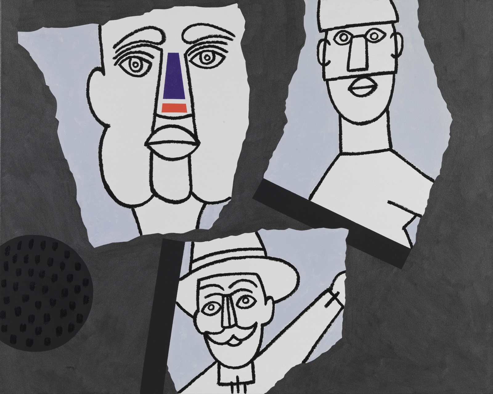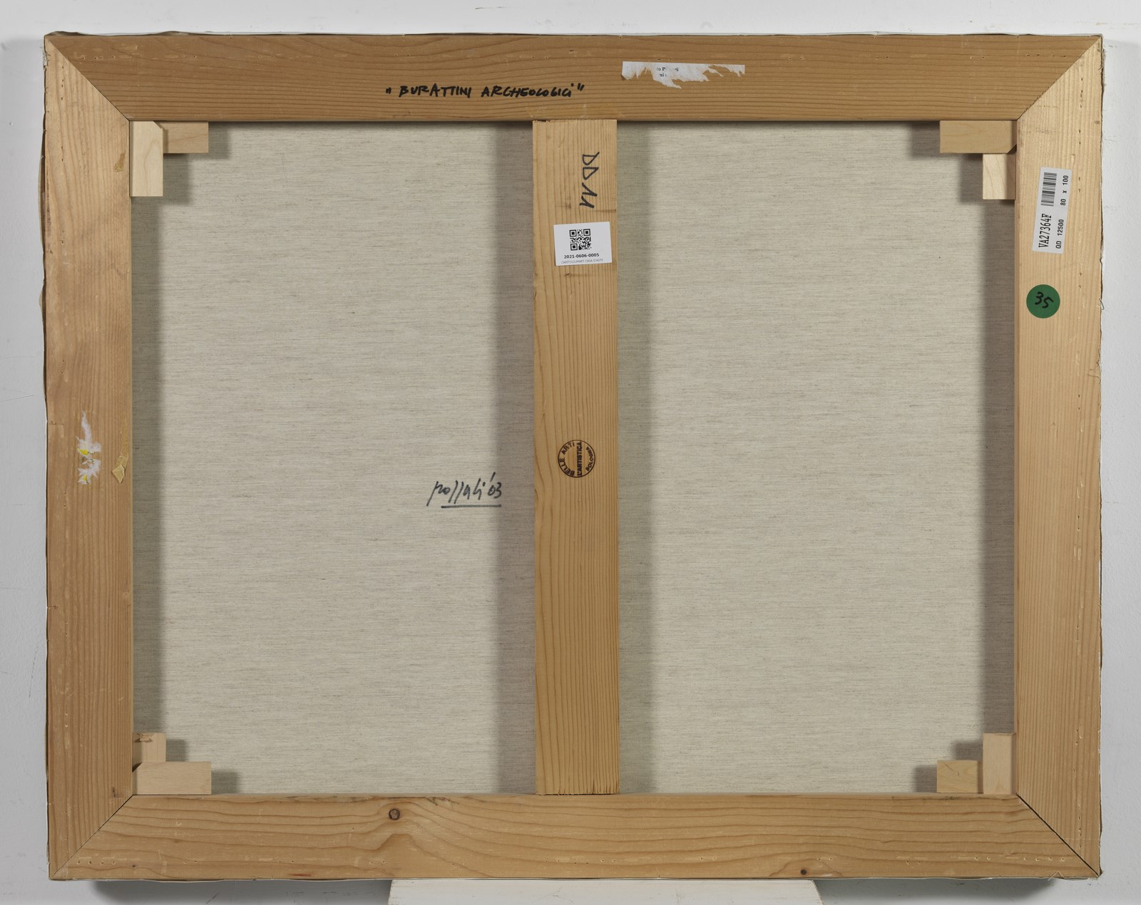 POZZATI CONCETTO (n. 1935) Burattini archeologici. 2003. Smalto e acrilico su tela. Cm 100,00 x 80,00. Al retro titolo, firma e anno. Autentica dell'artista su fotografia riportante il relativo numero d'inventario. Certificato di provenienza Telemarket, Roncadelle. Provenienza: Telemarket, Roncadelle; Collezione privata, Roma.
