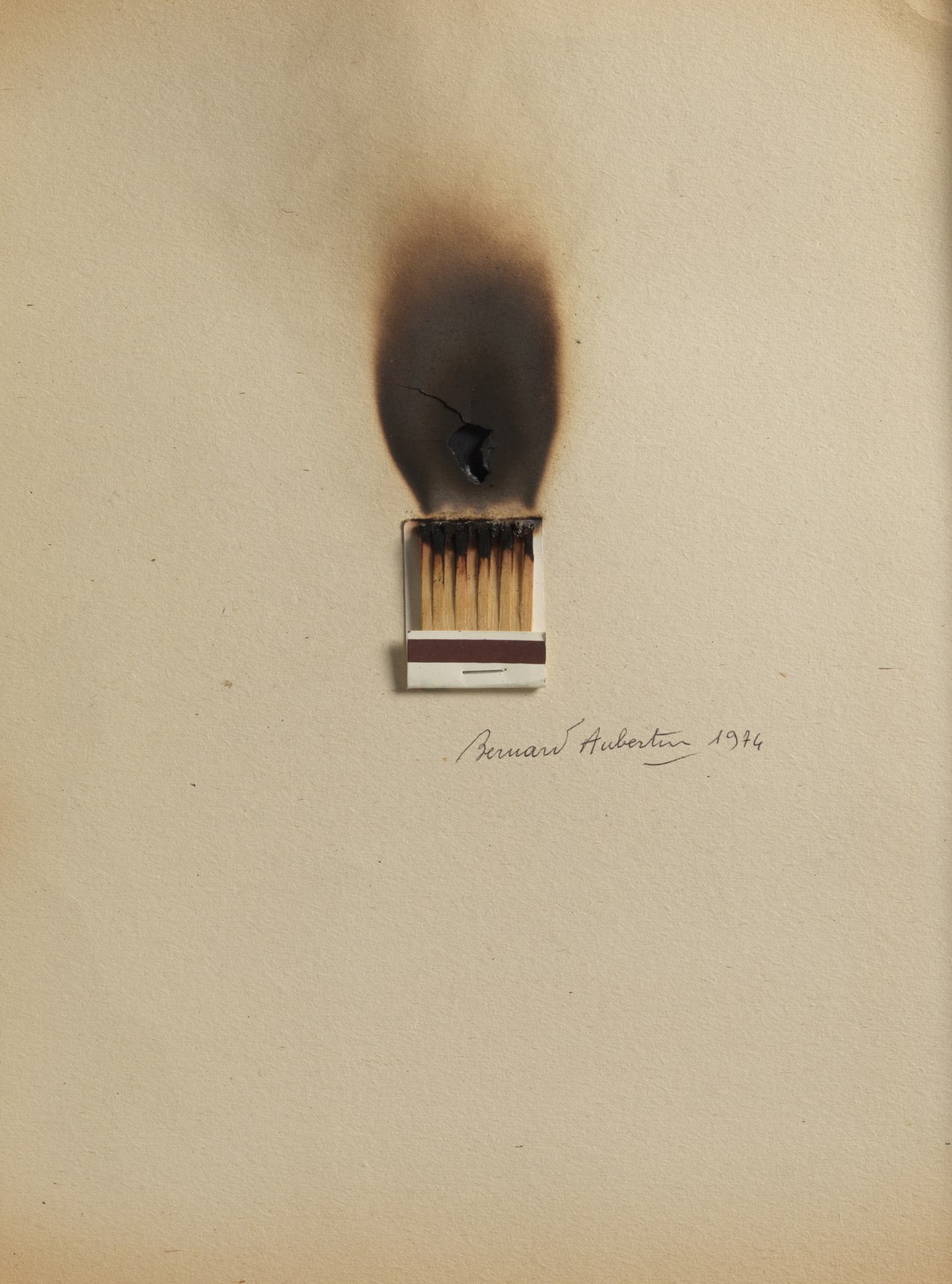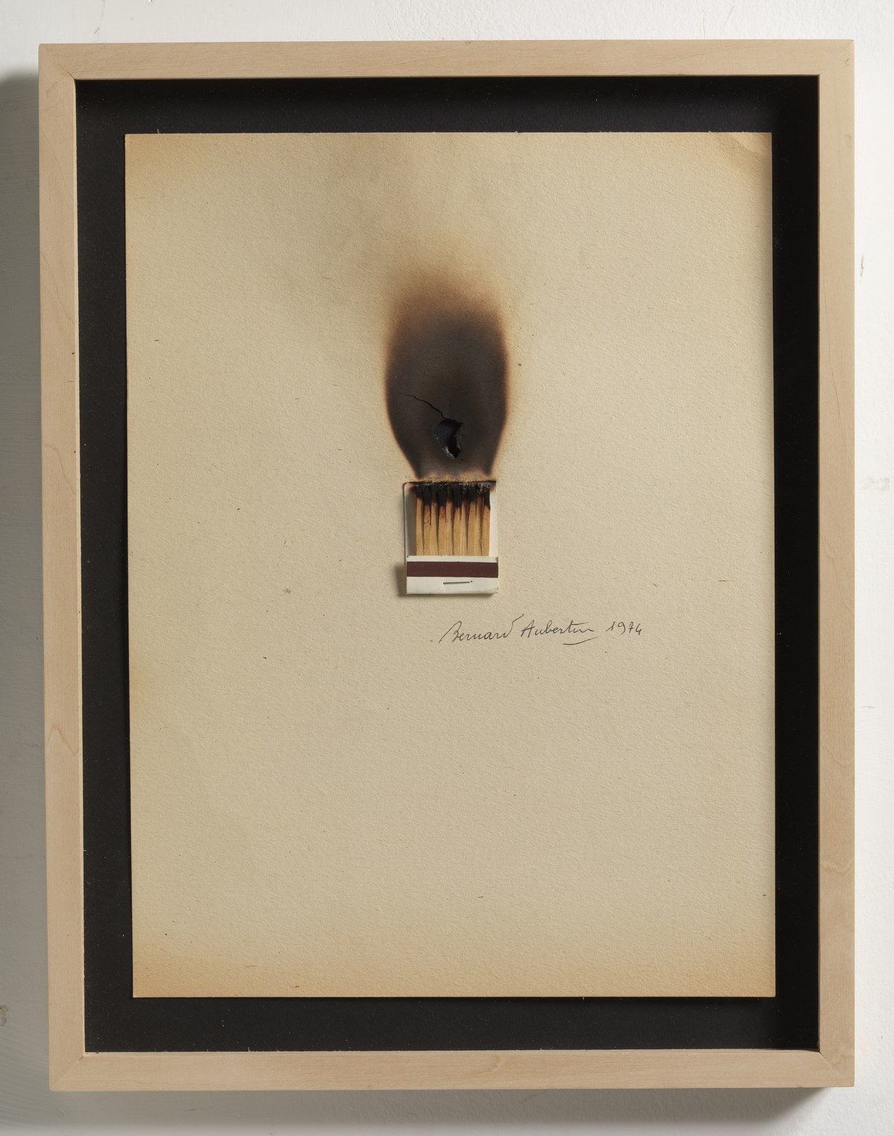 AUBERTIN BERNARD (1934 - 2015) Dessin de feu. 1974. Fiammiferi bruciati su carta. Cm 29,00 x 37,50. Firma e anno in basso a destra. Certificato di autenticità con timbro e firma dell'Archivio Bernard Aubertin, Brescia. Si ringrazia l'Archivio Bernard Aubertin, Brescia, per aver confermato l'autenticità dell'opera. Cornice presente