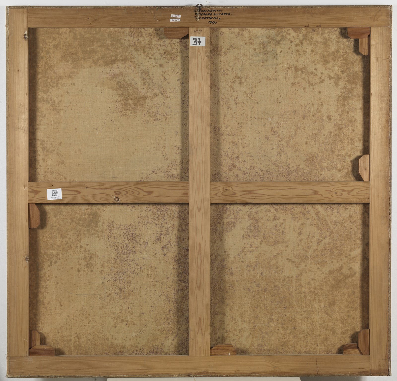 MARTINI SANDRO (n. 1941) I fantasmi. 1971. Tecnica mista su carta su tela. Cm 140,00 x 135,00. Al retro titolo, firma e anno. Autentica dell'artista su fotografia.