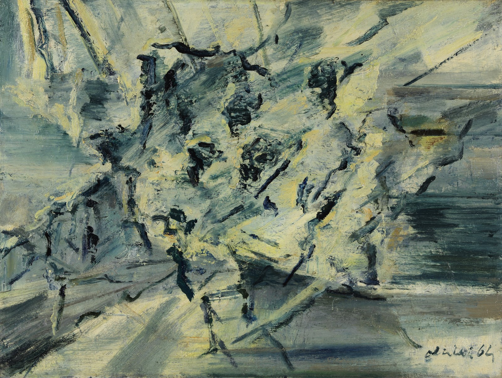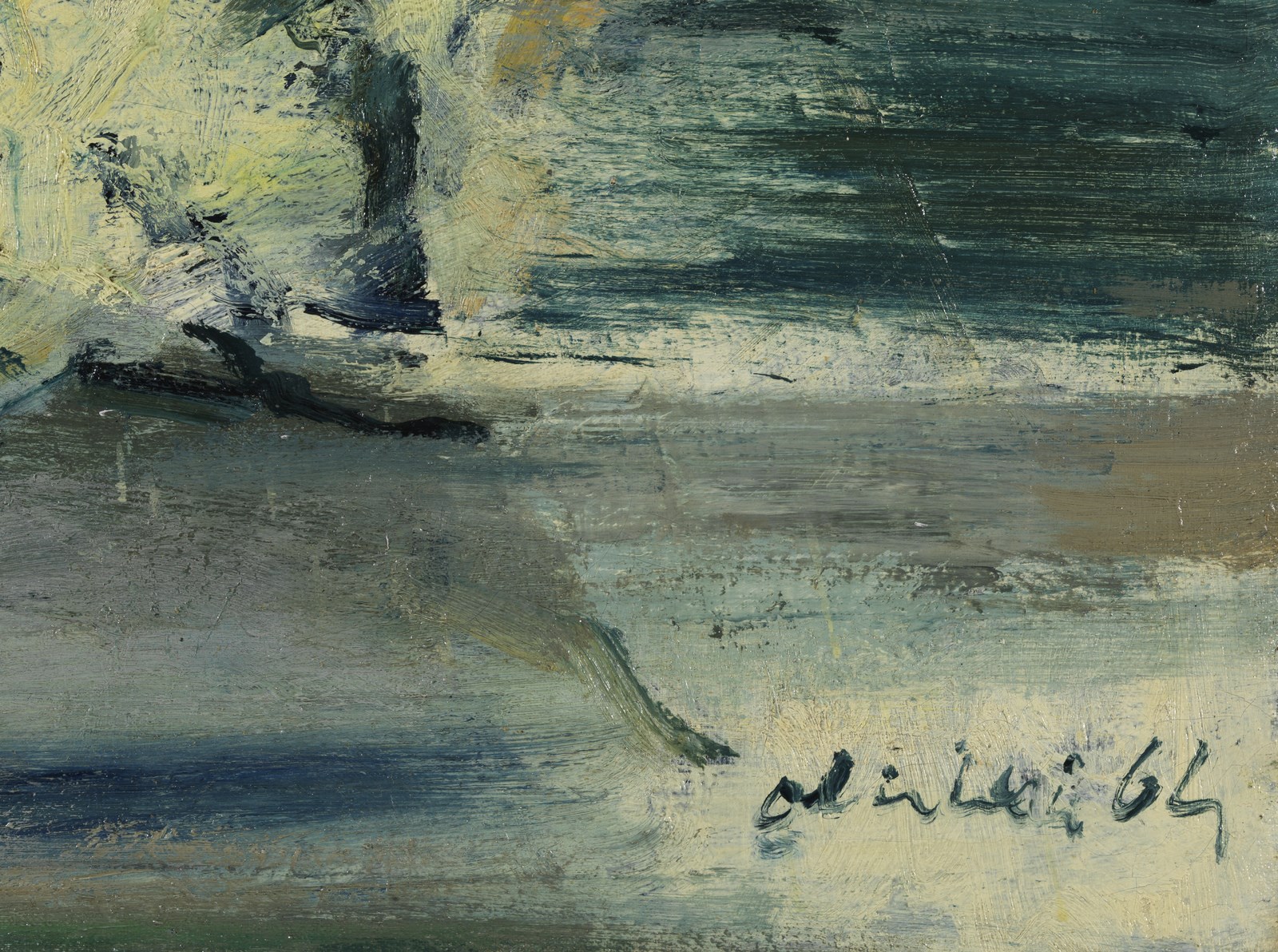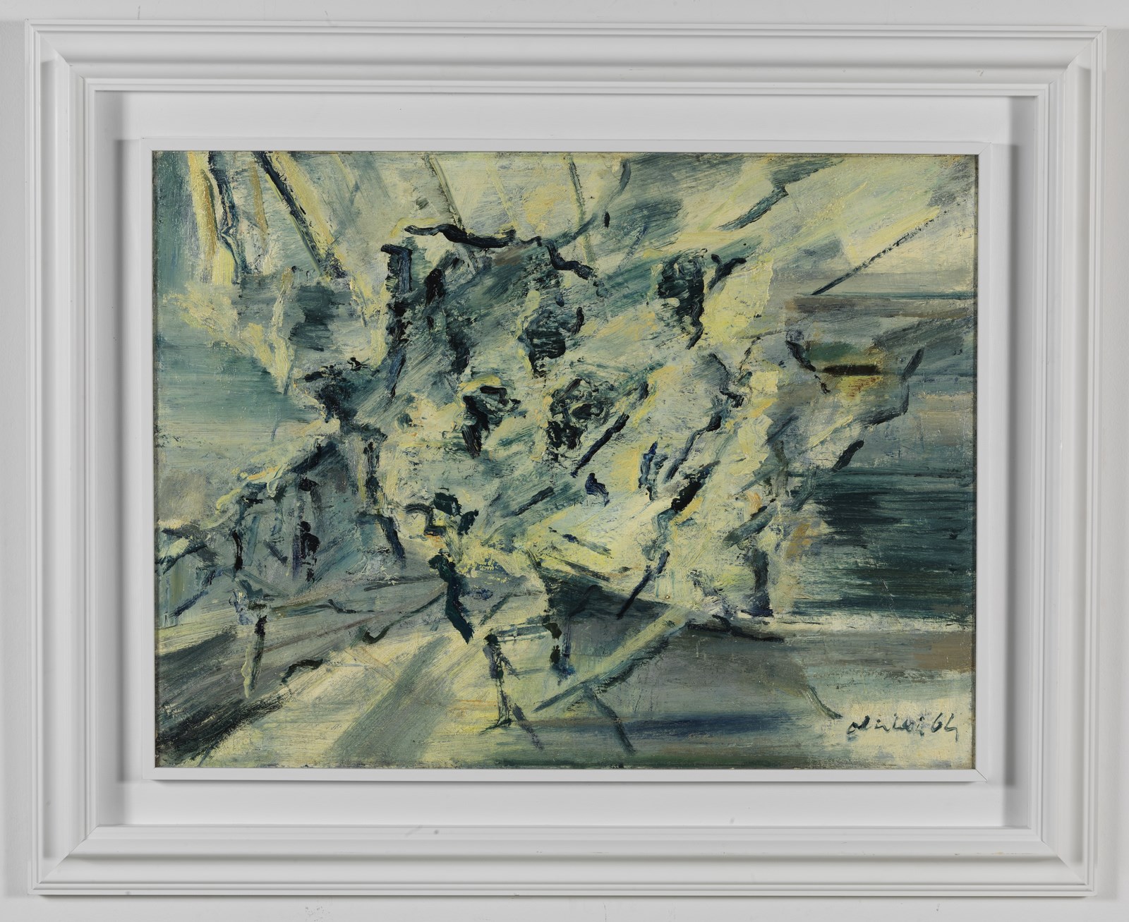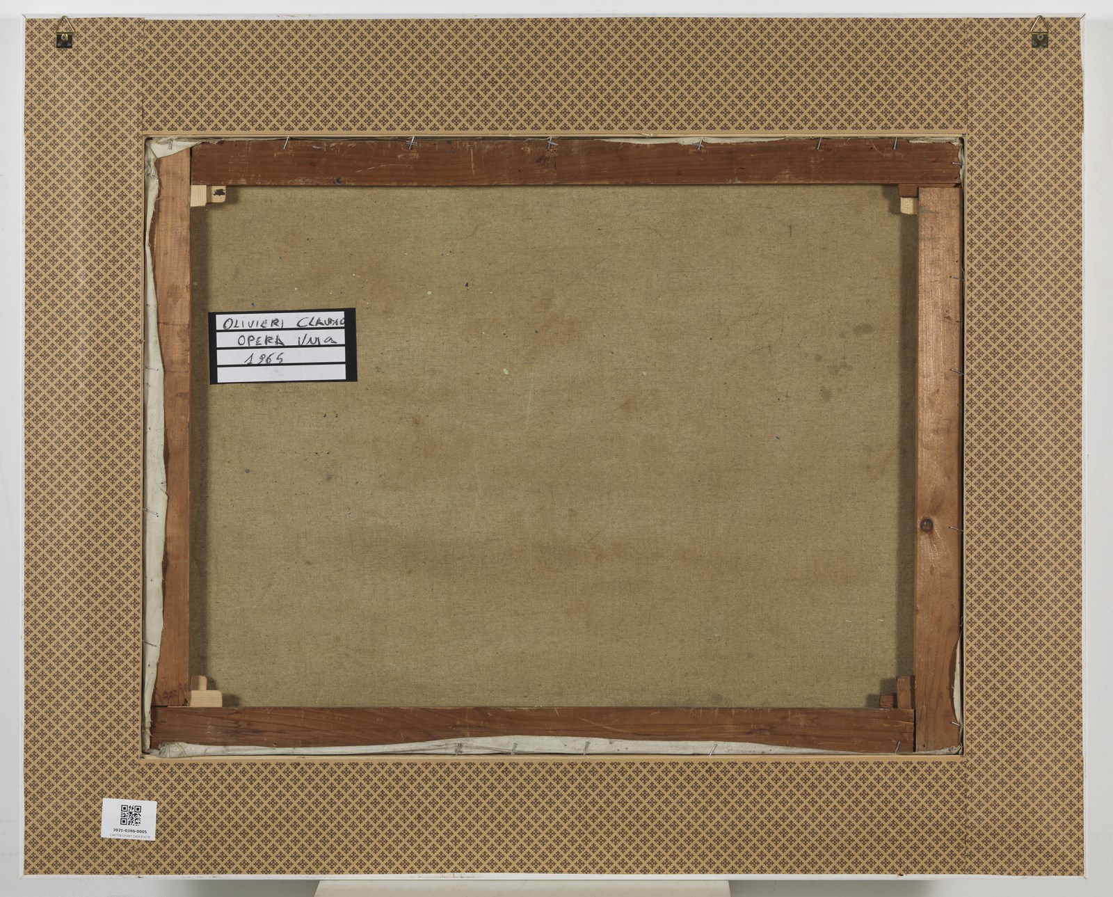 OLIVIERI CLAUDIO (n. 1934) Senza titolo. 1964. Olio su tela . Cm 80,00 x 60,00. Firma e anno in basso a destra. Autentica dell'artista su fotografia. Cornice presente
