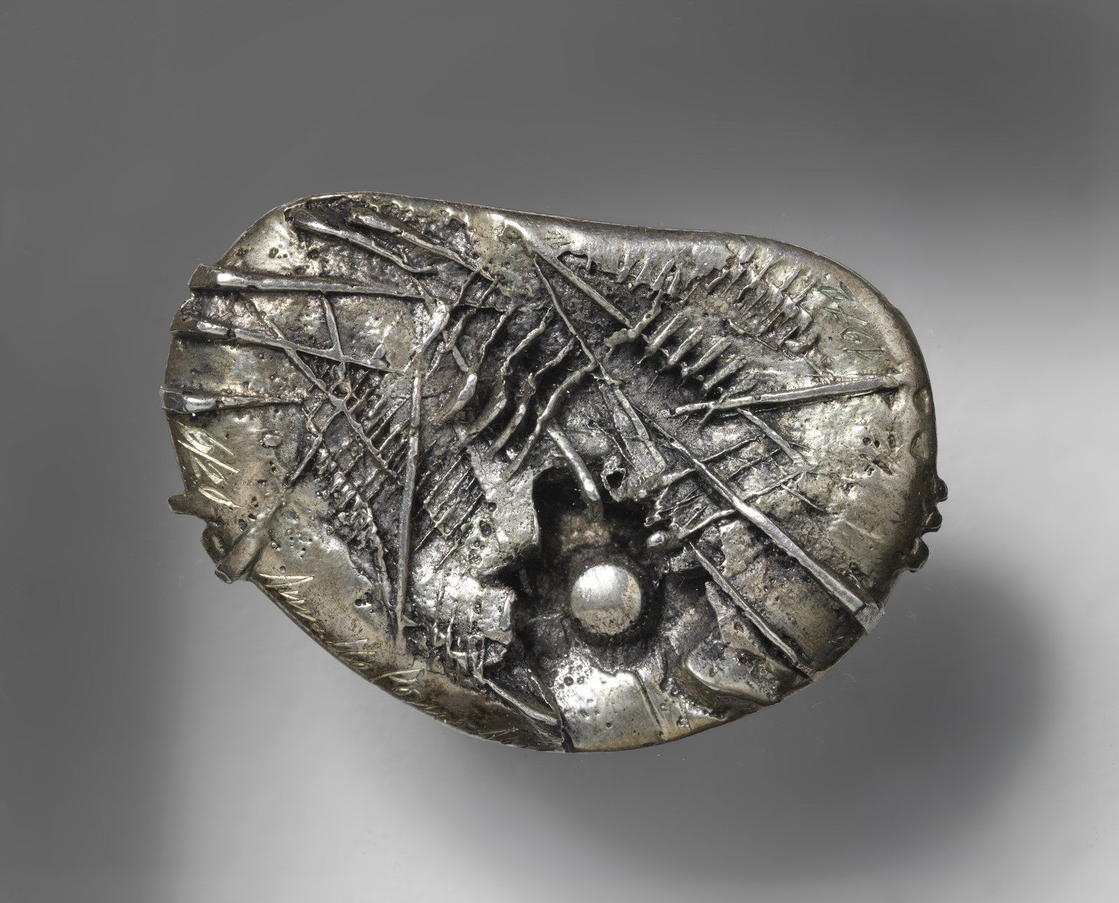 POMODORO ARNALDO (n. 1926) Sasso. 1972. Multiplo. Cm 5,00 x 3,50. 6/20. Tiratura, firma e anno incise. Opera registrata presso la Fondazione Arnaldo Pomodoro - Sez. Multipli. Edizione totale: 20 esemplari numeri arabi + prove d'artista. Edizioni GEM Montebello, Milano. Provenienza: Casa d'aste Viscontea, Milano. Cornice presente