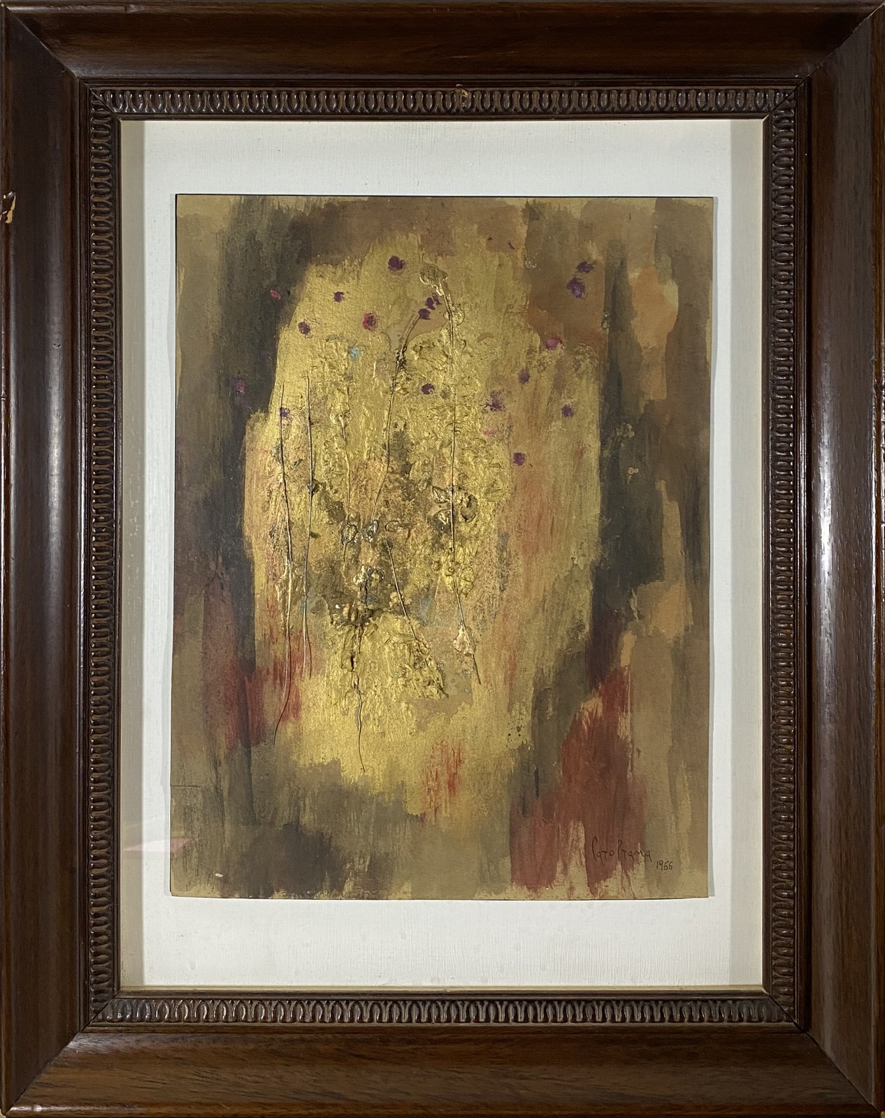 RAMA CAROL (1918 - 2015) Senza titolo. 1966. Tecnica mista su carta. Cm 26,00 x 35,50. Firma e anno in basso a destra. Provenienza: Collezione Salzano, Torino. Collezione privata, Torino. Opera archiviata presso l'Archivio Carol Rama, Torino, come da documentazione fotografica allegata all'opera riportante il relativo numero d'inventario. Cornice presente