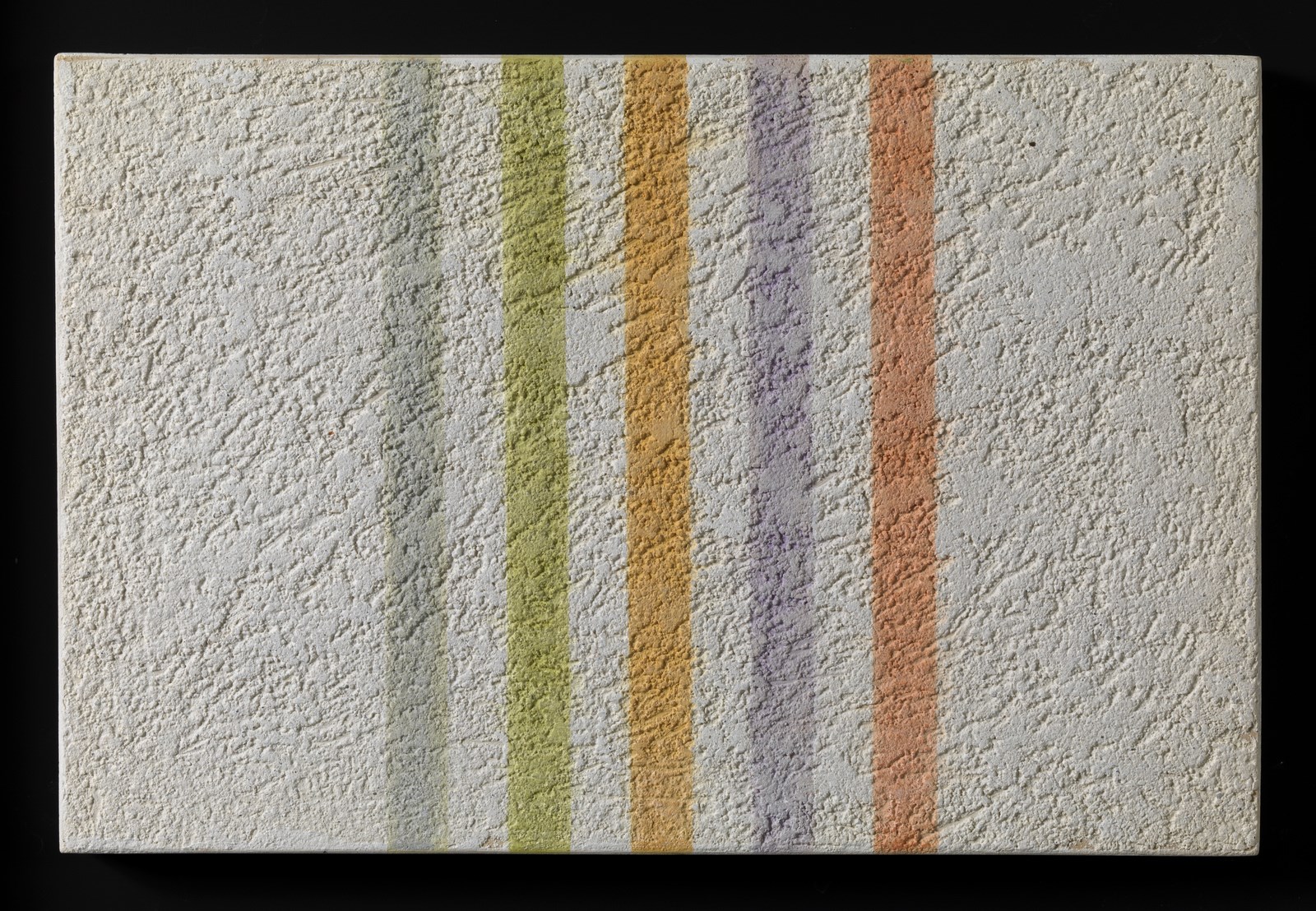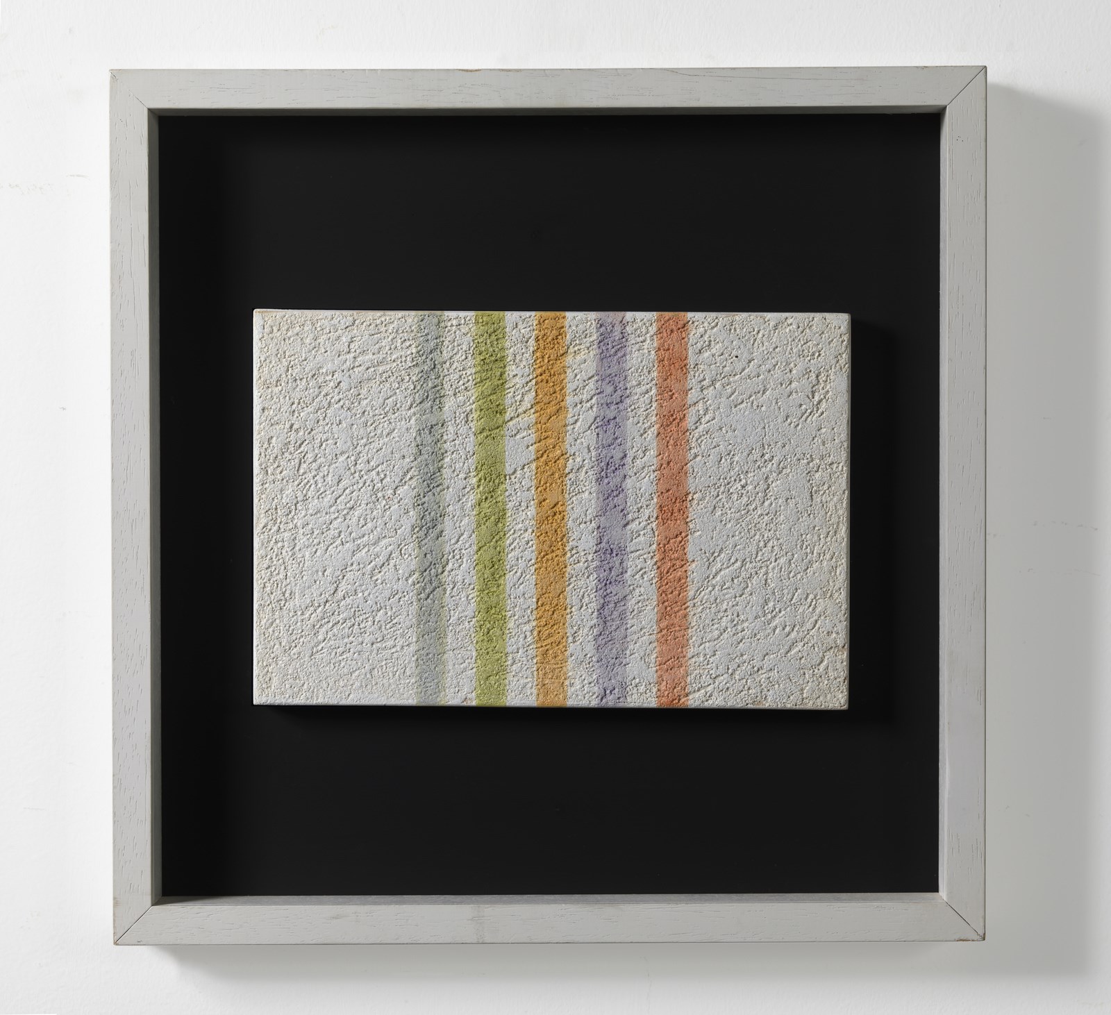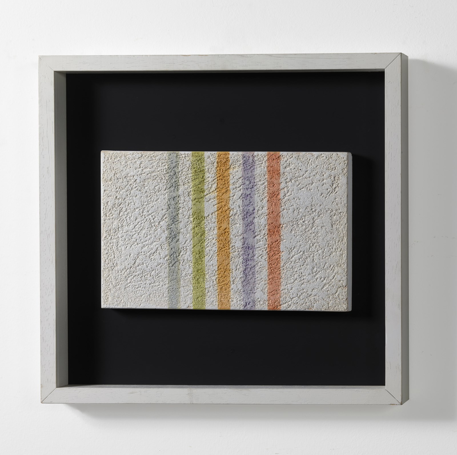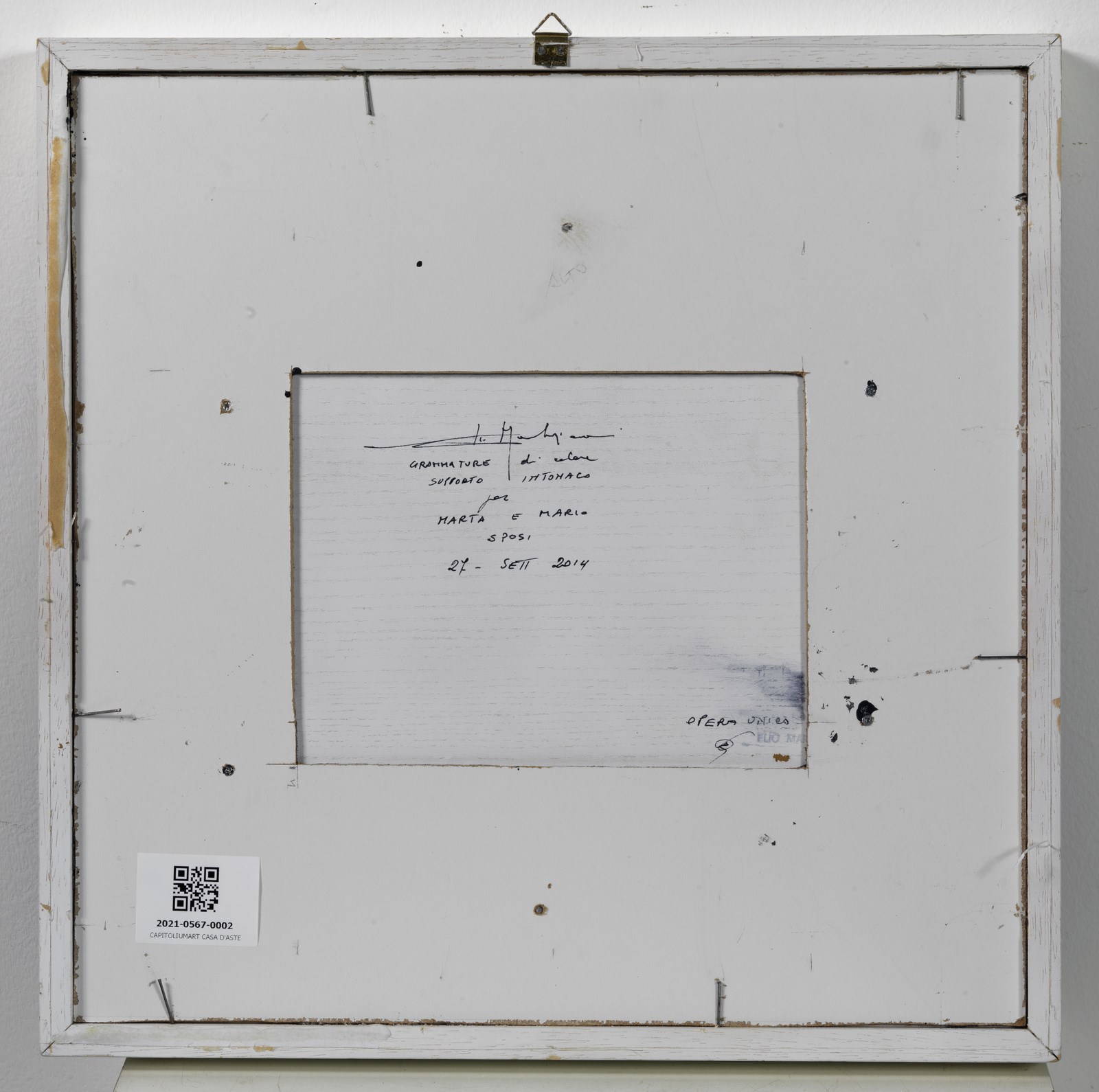 MARCHEGIANI ELIO (n. 1929) Grammature di colori. Acrilico su intonaco. Cm 30,00 x 20,00. Al retro titolo, firma, dedica e timbro dell'artista. Cornice presente