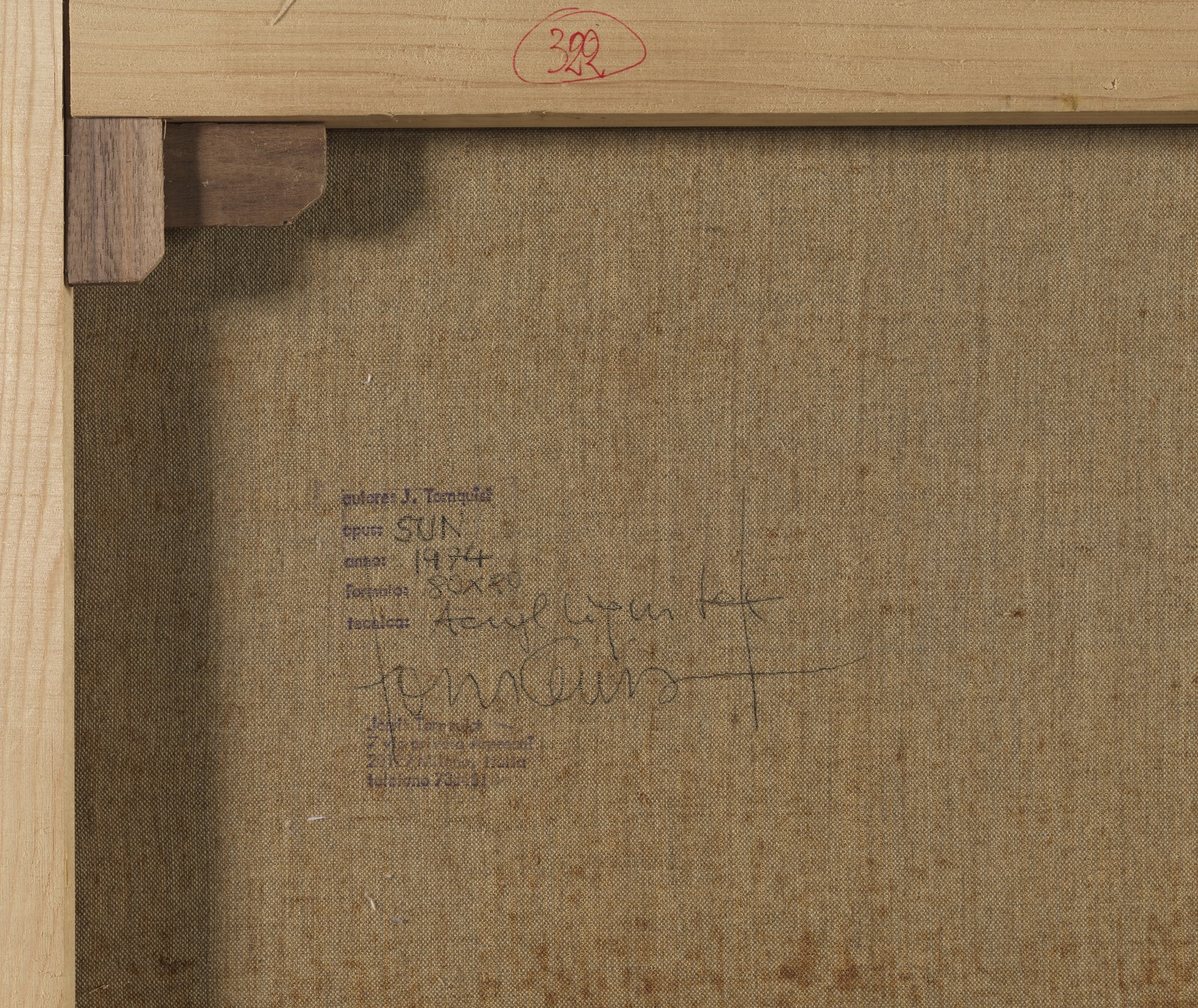 TORNQUIST JORRIT (n. 1938) Sun. 1974. Acrilico su tela. Cm 80,00 x 80,00. Al retro titolo, firma, anno e timbro dell'artista. Opera archiviata presso lo Jorrit Tornquist Archive come da documentazione fotografica allegata all'opera riportante il relativo numero d'inventario. Difetti.