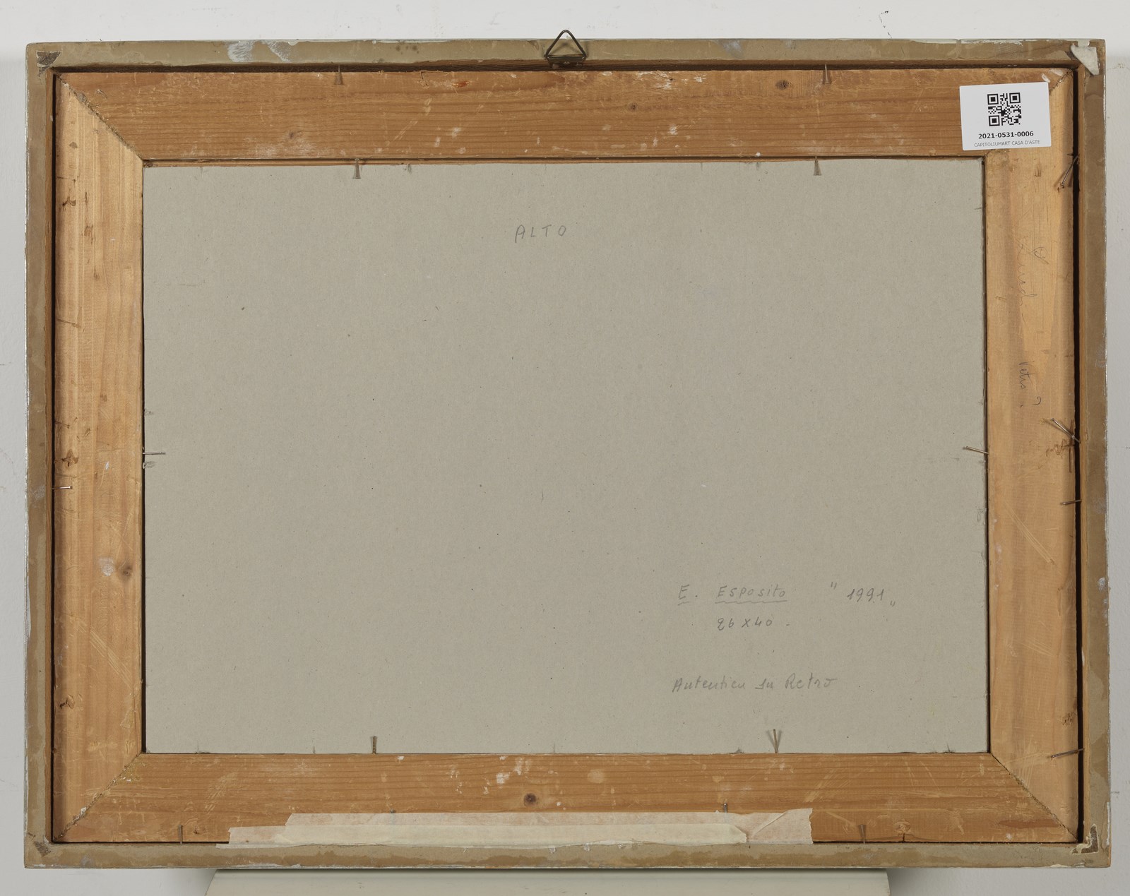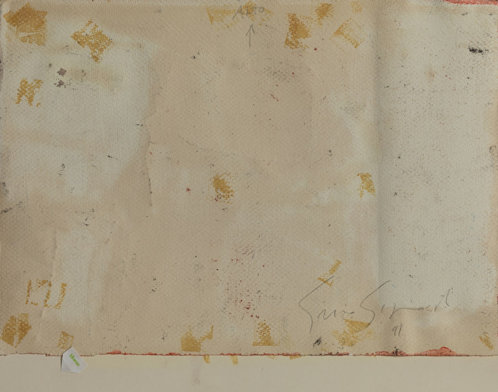 ESPOSITO ENZO (n. 1946) Senza titolo. 1991. Tecnica mista su carta. Cm 40,00 x 26,00. Al retro firma e anno. Autentica dell'artista su fotografia. Cornice presente