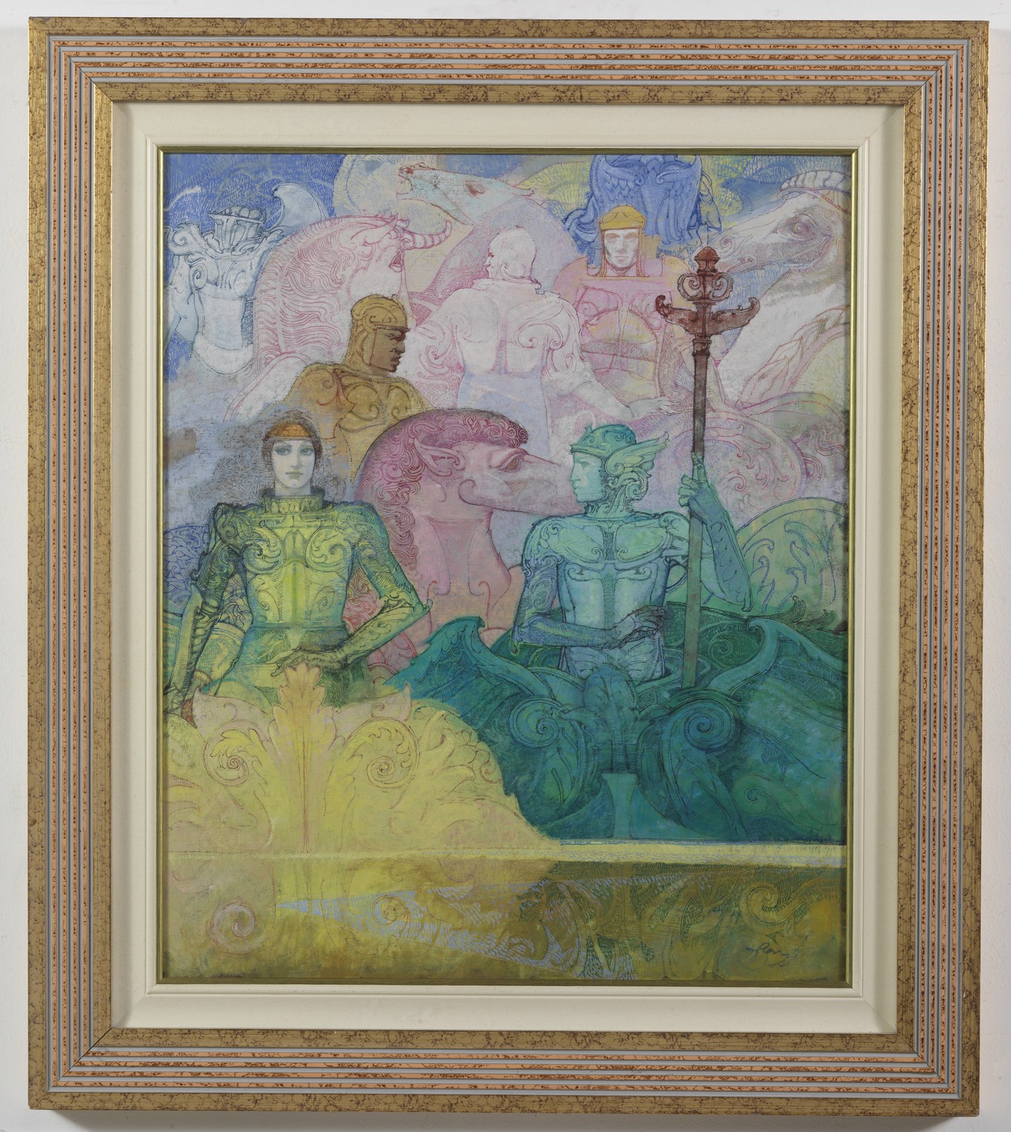 DE ROSA RAFFAELE (n. 1940) Figura. 1990. Olio su tela applicata su tavola. Cm 55,00 x 65,00. Firma in basso a destra. Opera archiviata presso l'Archivio Raffaele De Rosa - Bianco Giovanbattista come da documentazione fotografica allegata all'opera riportante il relativo numero d'inventario e la firma dell'artista. Cornice presente