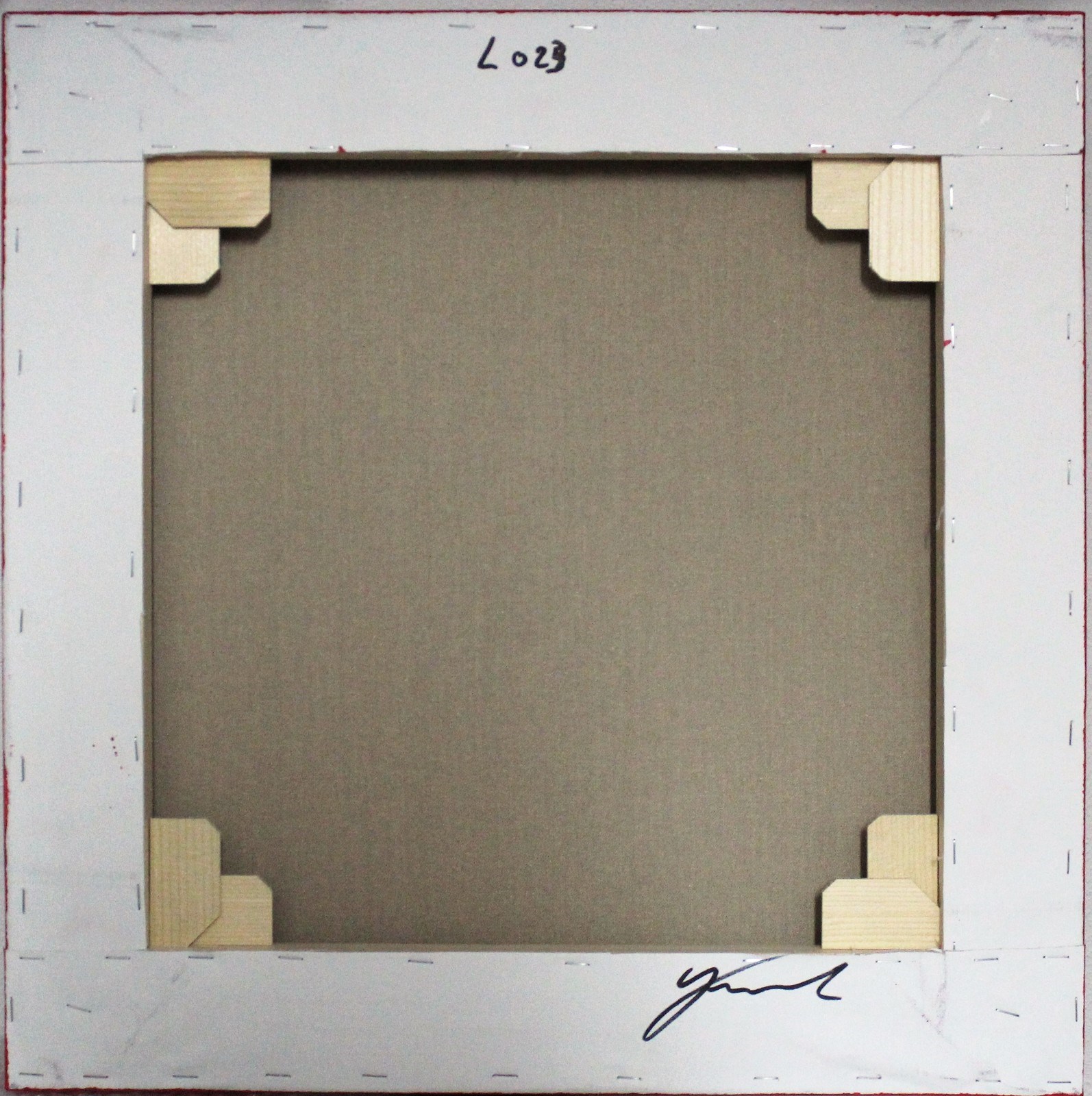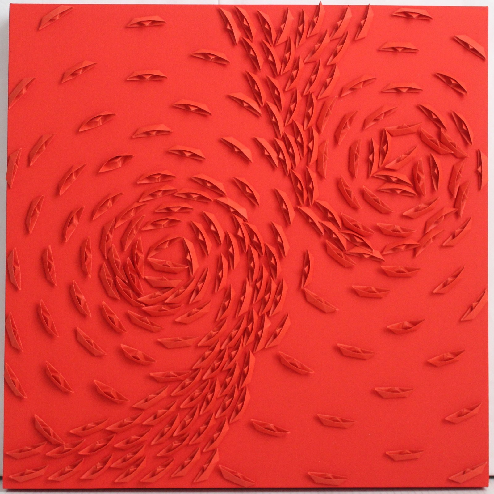 GUSMAROLI RICCARDO (n. 1963) Vortice rosso. 2021. Tecnica mista e applicazioni su tela. Cm 45,00 x 45,00. Firma al retro. Opera archiviata presso l'Archivio Riccardo Gusmaroli come da documentazione fotografica allegata all'opera riportante il relativo numero d'inventario.