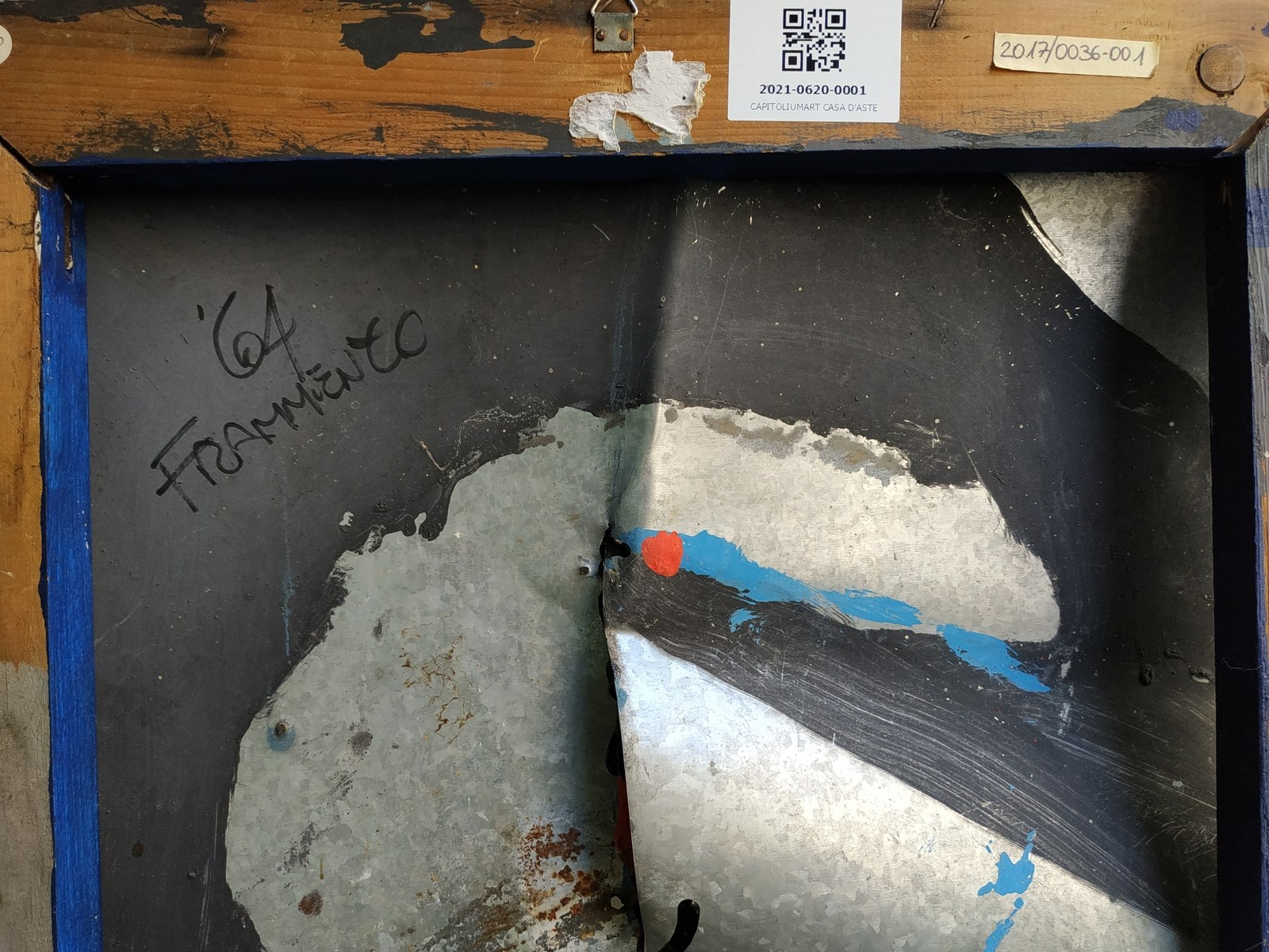 CARENA ANTONIO (n. 1925) Frammento. 1964. lamiera su legno. Cm 72,00 x 100,00 x 3,00. Titolo e anno al retro. Autentica dell'artista su fotografia.