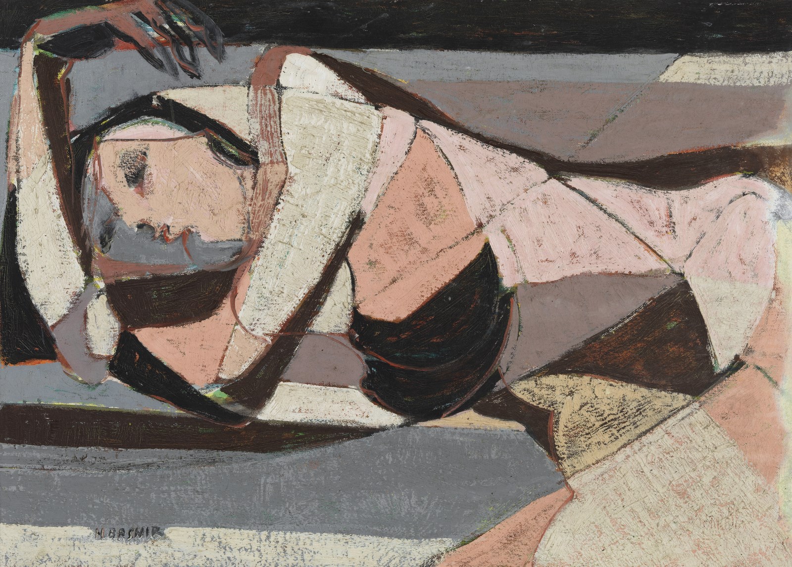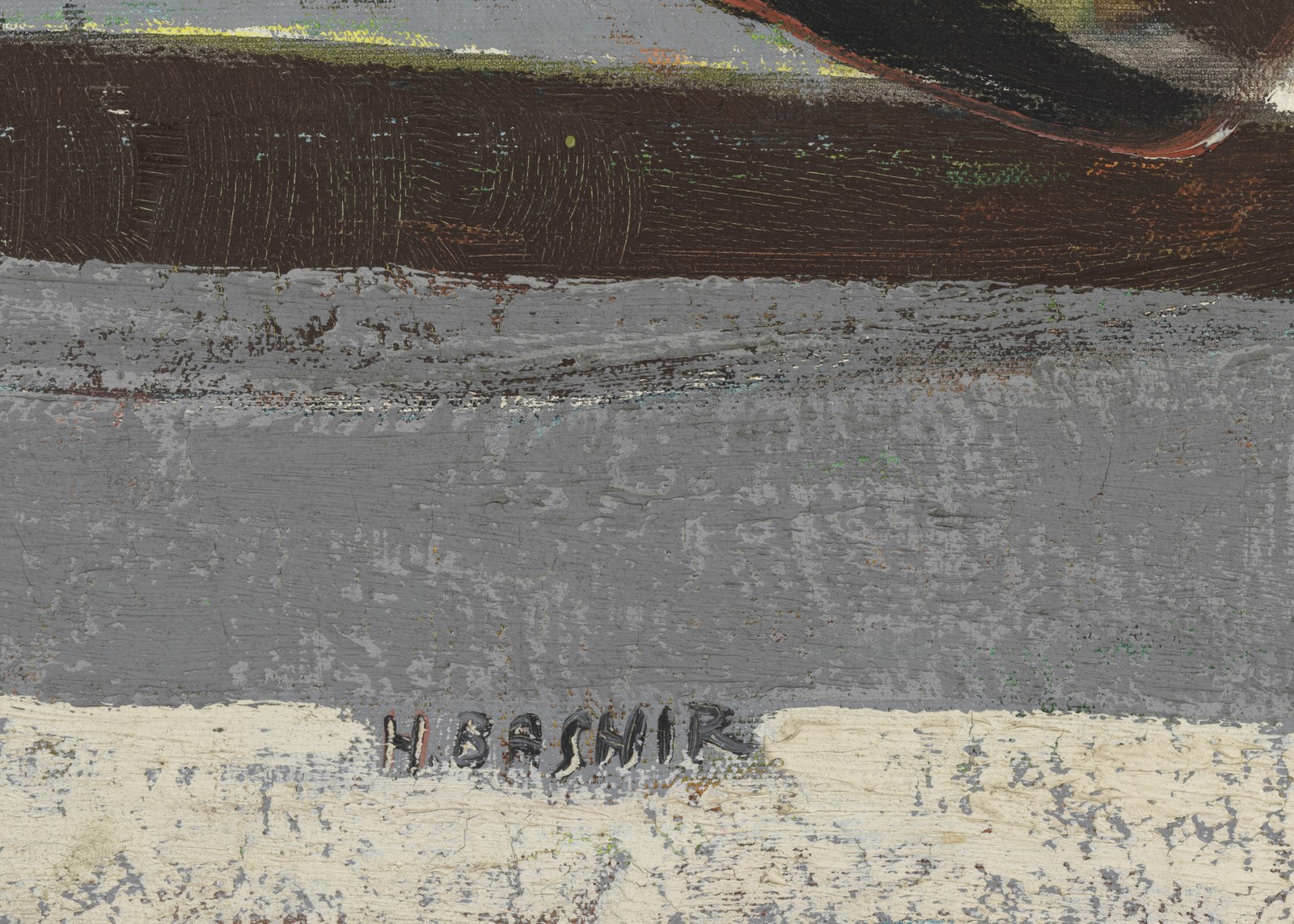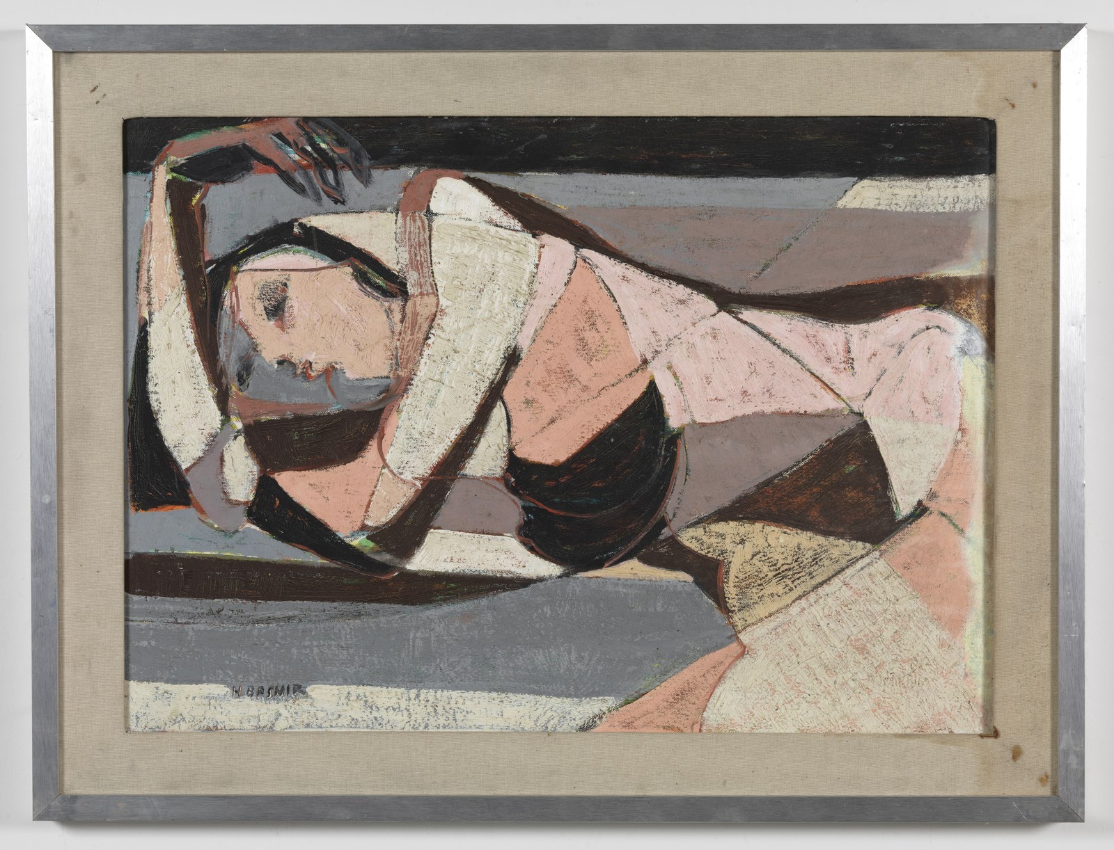 HAMMOUDA BASHIR (n. 1948) Figura femminile. Tecnica mista su tela. Cm 68,00 x 48,00. Firma in basso a sinistra. Lievi difetti. Cornice presente