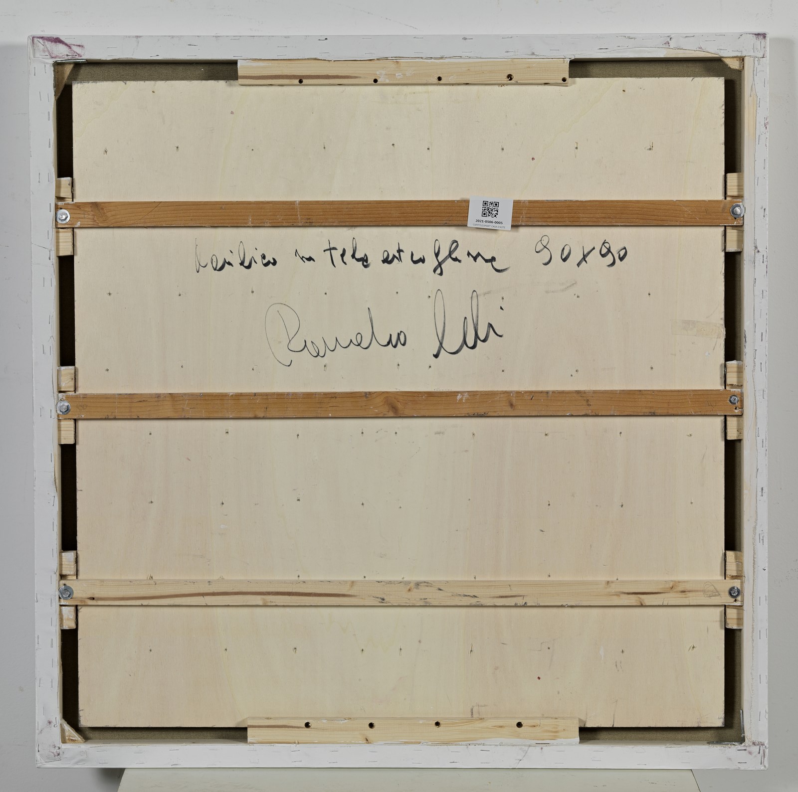 ROMANO LELI (n. 1957) Senza titolo. Acrilico su tela estroflessa. Cm 90,00 x 90,00. Firma al retro. Autentica dell'artista su fotografia.