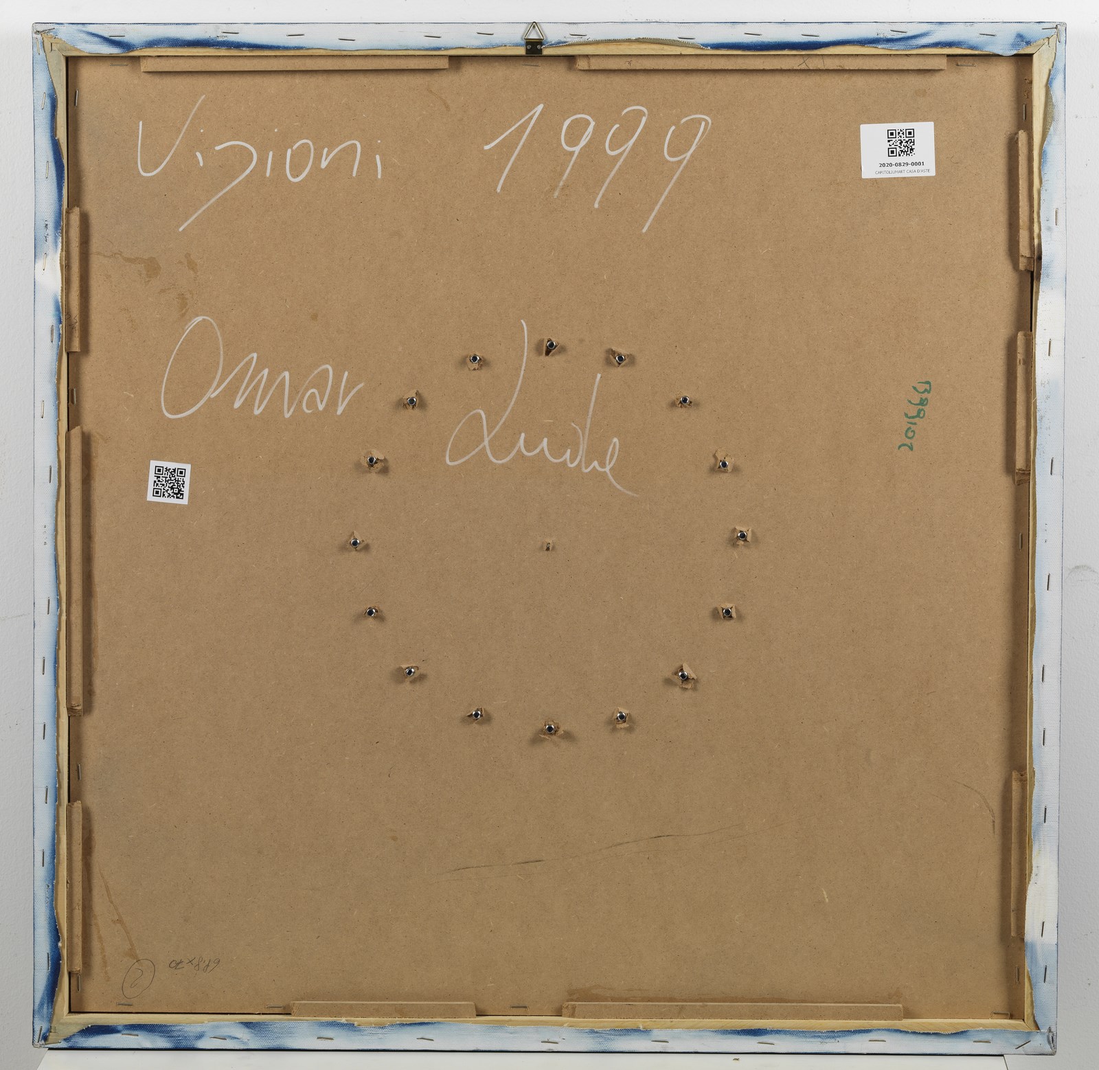 OMAR LUDO (n. 1953) Visioni. 1999. Acrilico su tela estroflessa. Cm 75,00 x 75,00. Al retro titolo, firma e anno. Autentica dell'artista su fotografia.