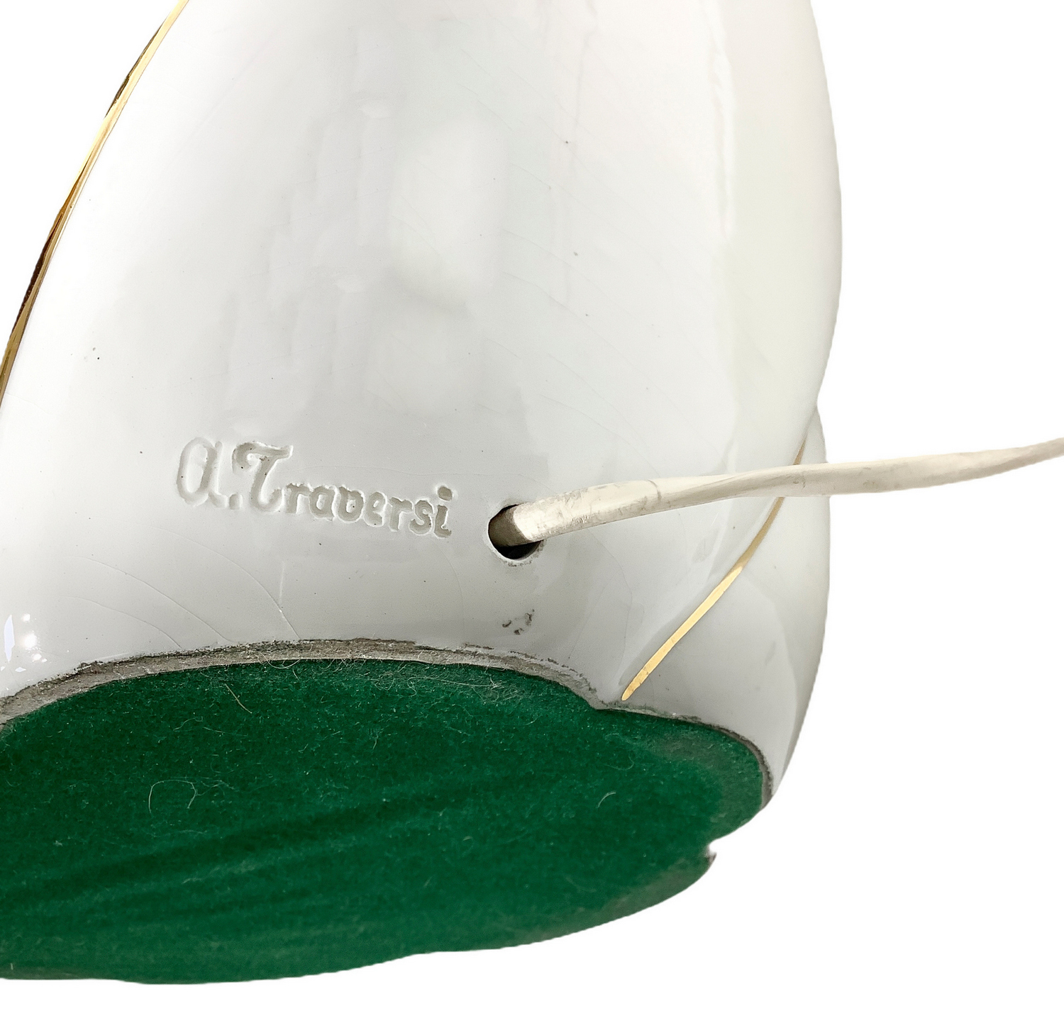 Abat Jour in porcellana bianca, prod italiana. Superficie riportante dettagli in oro. Anni '70.