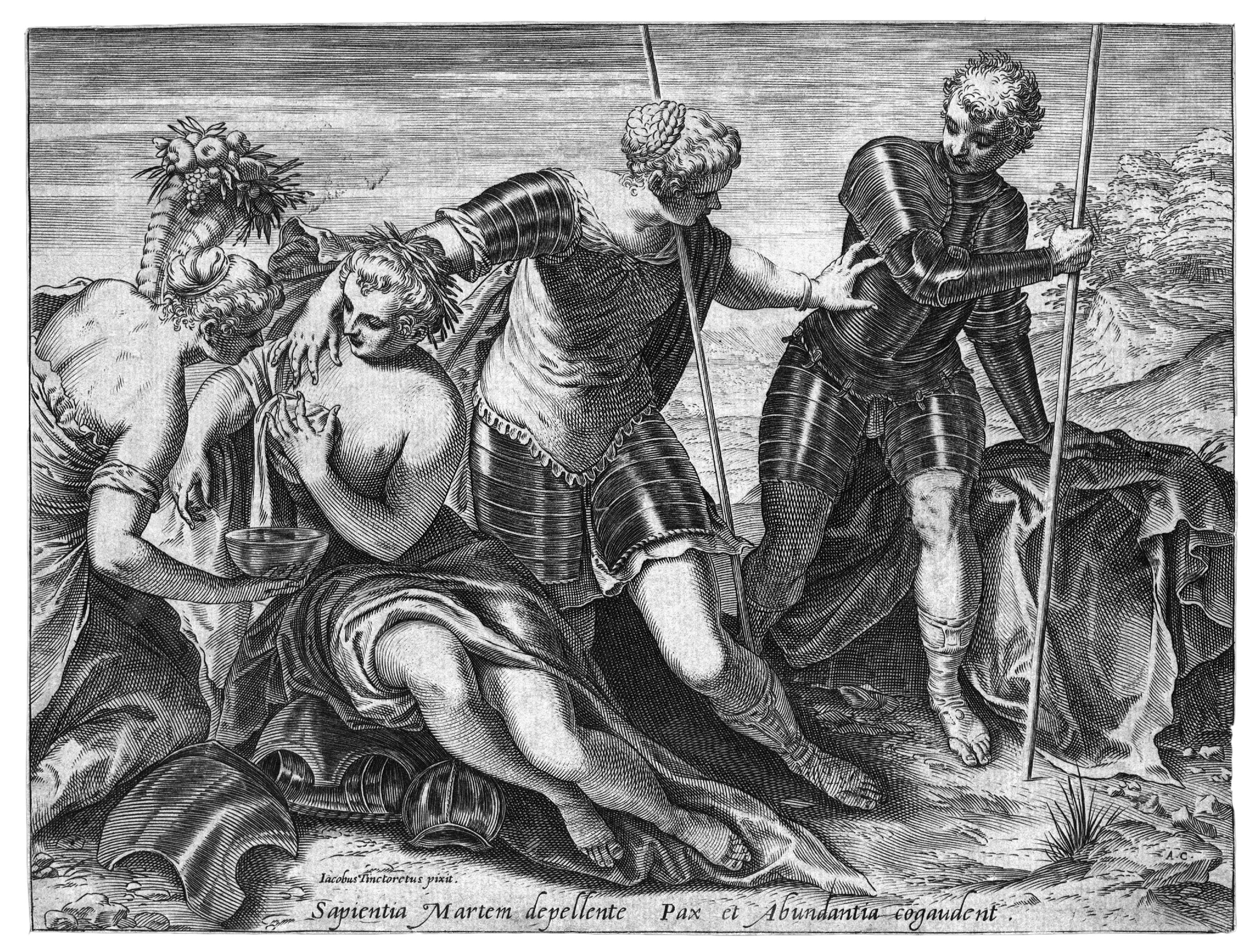 Monogrammata sulla lastra in basso a destra. Da un dipinto del Tintoretto in Palazzo Ducale a Venezia. III stato su 5 dopo le lettere e dopo l’abrasione della data.