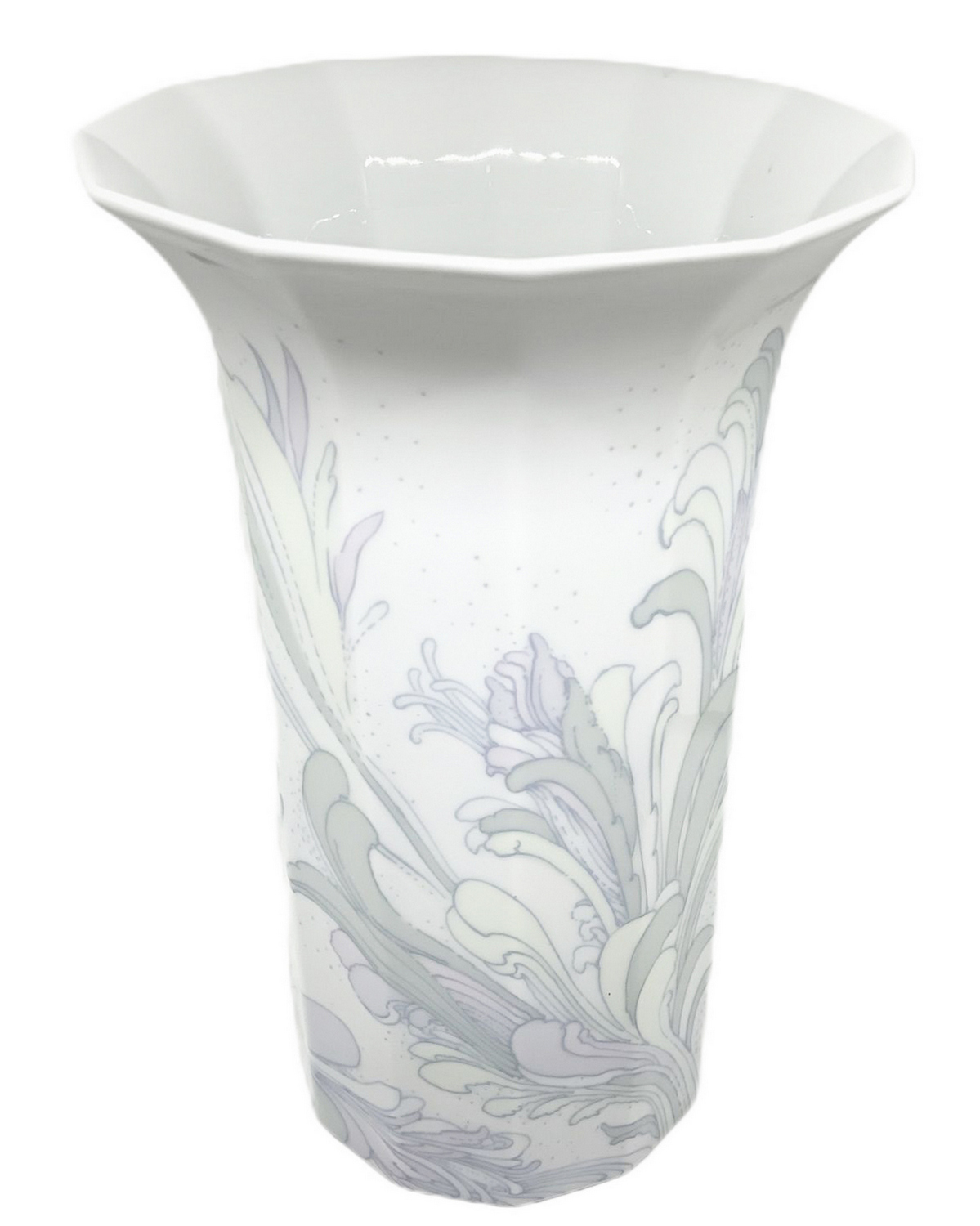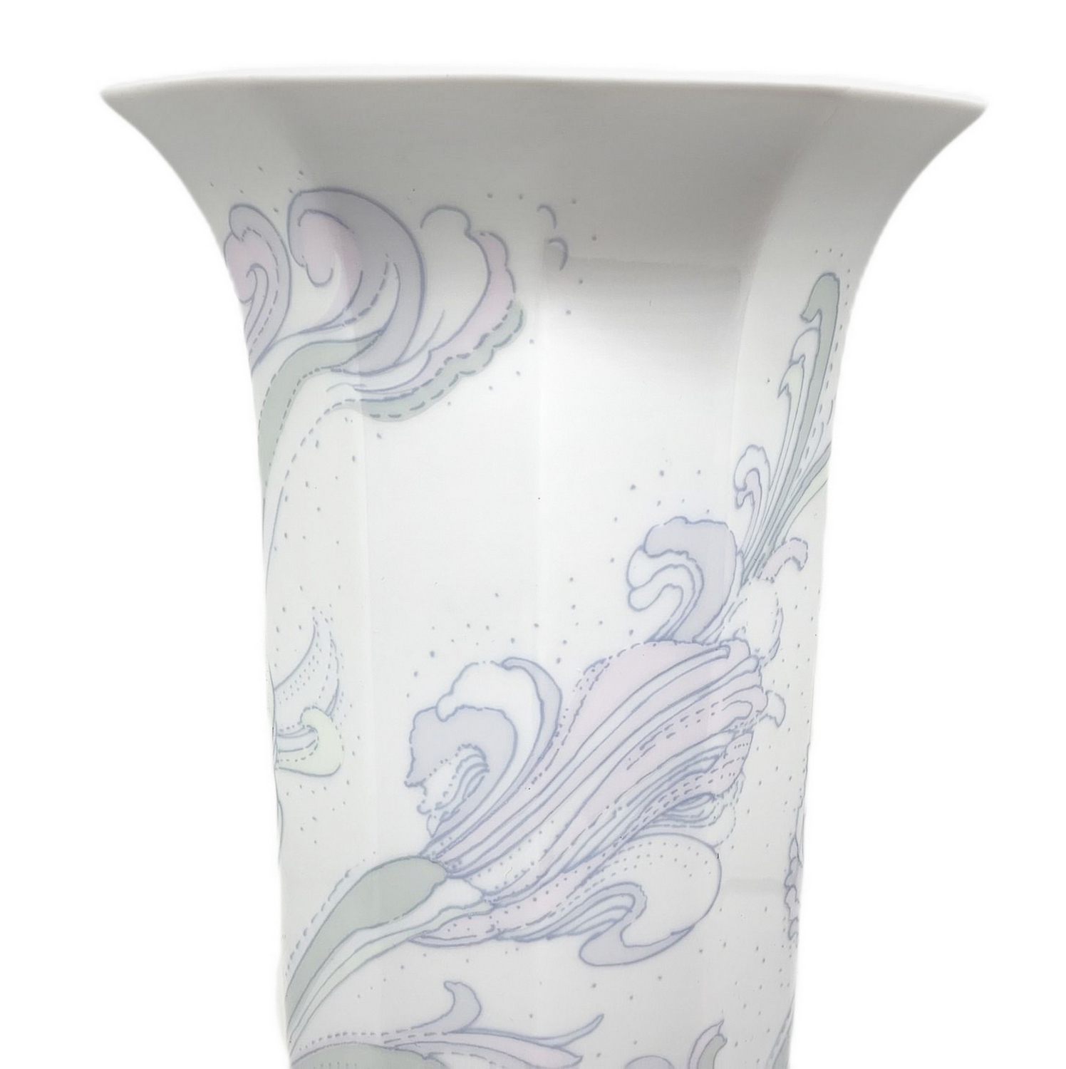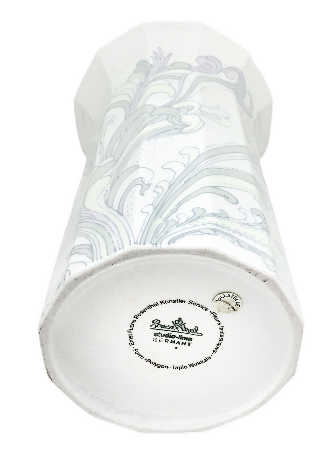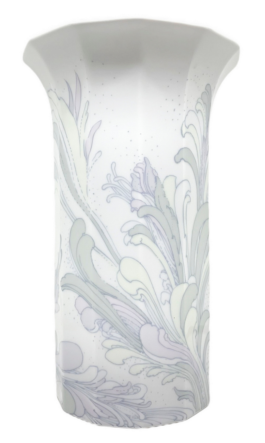 Rosenthal, modello Polygon, designer Tapio Wirkkala, Vaso in porcellana bianca. decorata “fleurs fantastiques”.