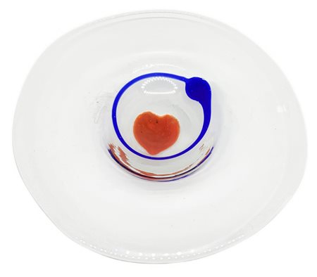 Piccolo centrotavola in vetro satinata con striature nei toni del blu, Ioan Tamaian, Romania. XX secolo. ,Firmato Tomaian.
