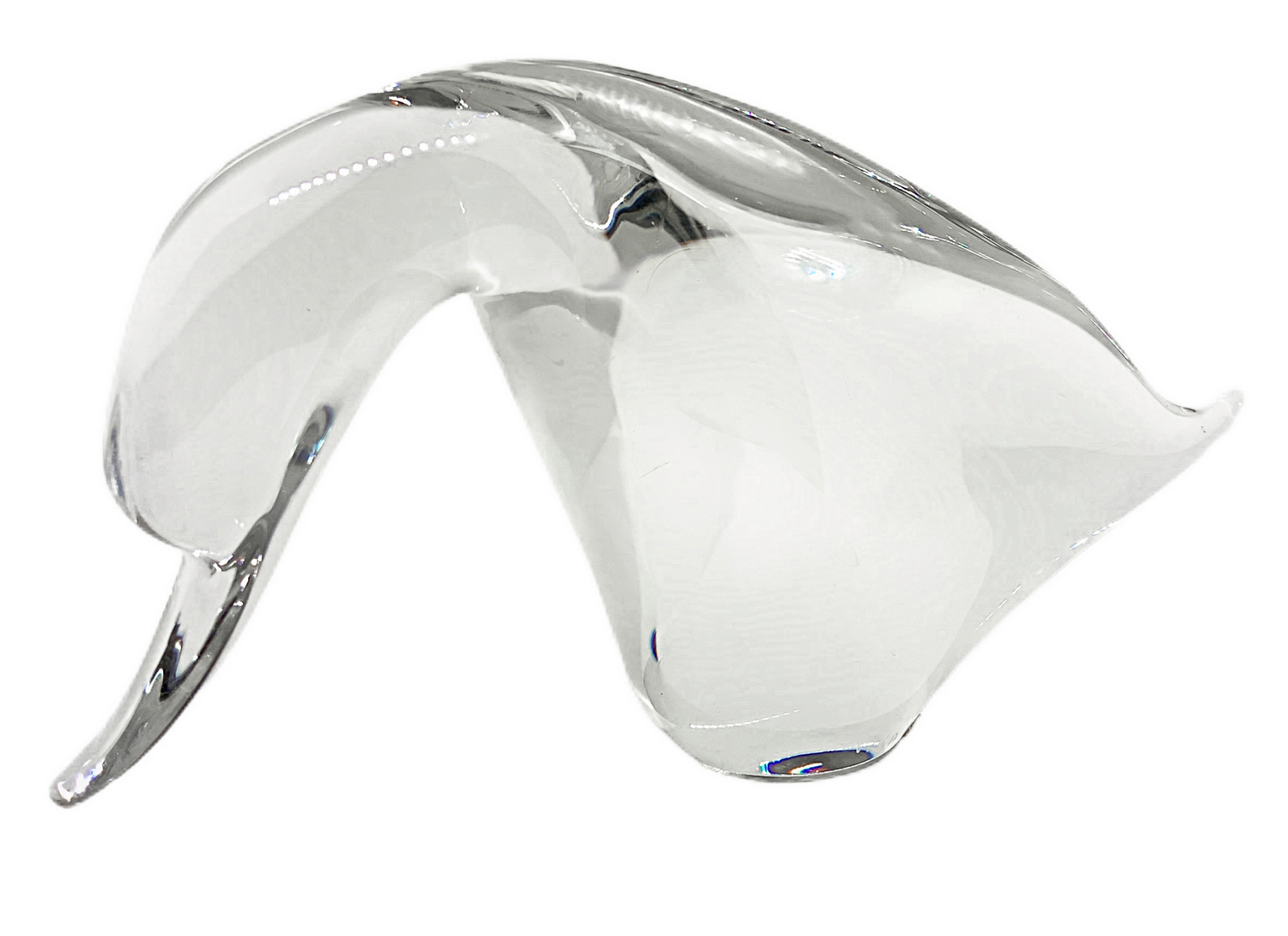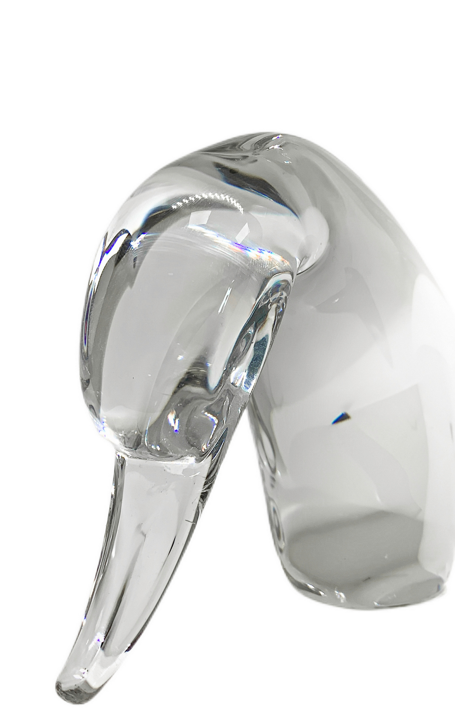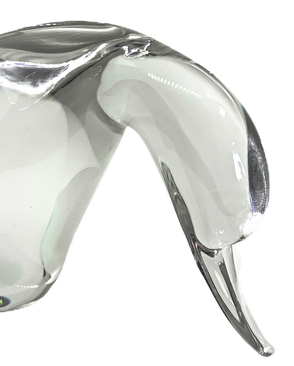 Scultura in cristallo di gusto informale raffigurante papera, XX secolo. Firmato sulla base.