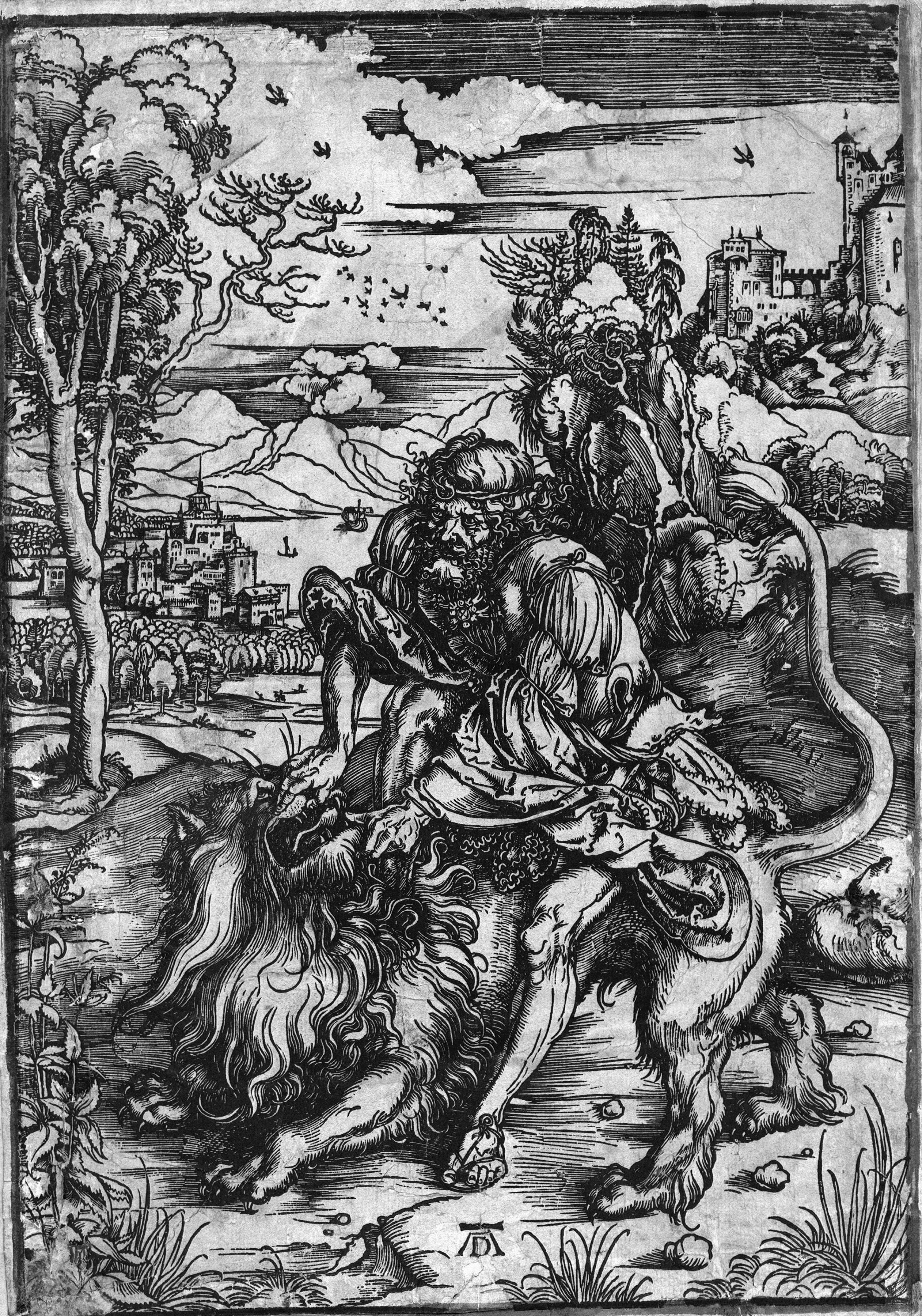 Dürer, Albrecht(Norimberga 1471 - 1528)SANSONE E IL LEONE DI NEMEA. ca....