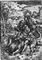 Ottima impressione stampata con inchiostrazione eccezionalmente forte e brillante su carta vergellata. Rifilata intorno alla linea di inquadramento, applicata a supporto di cartoncino, numerose lacune, linea marginale parzialmente ripassata in inchiostro, numerose pieghe.