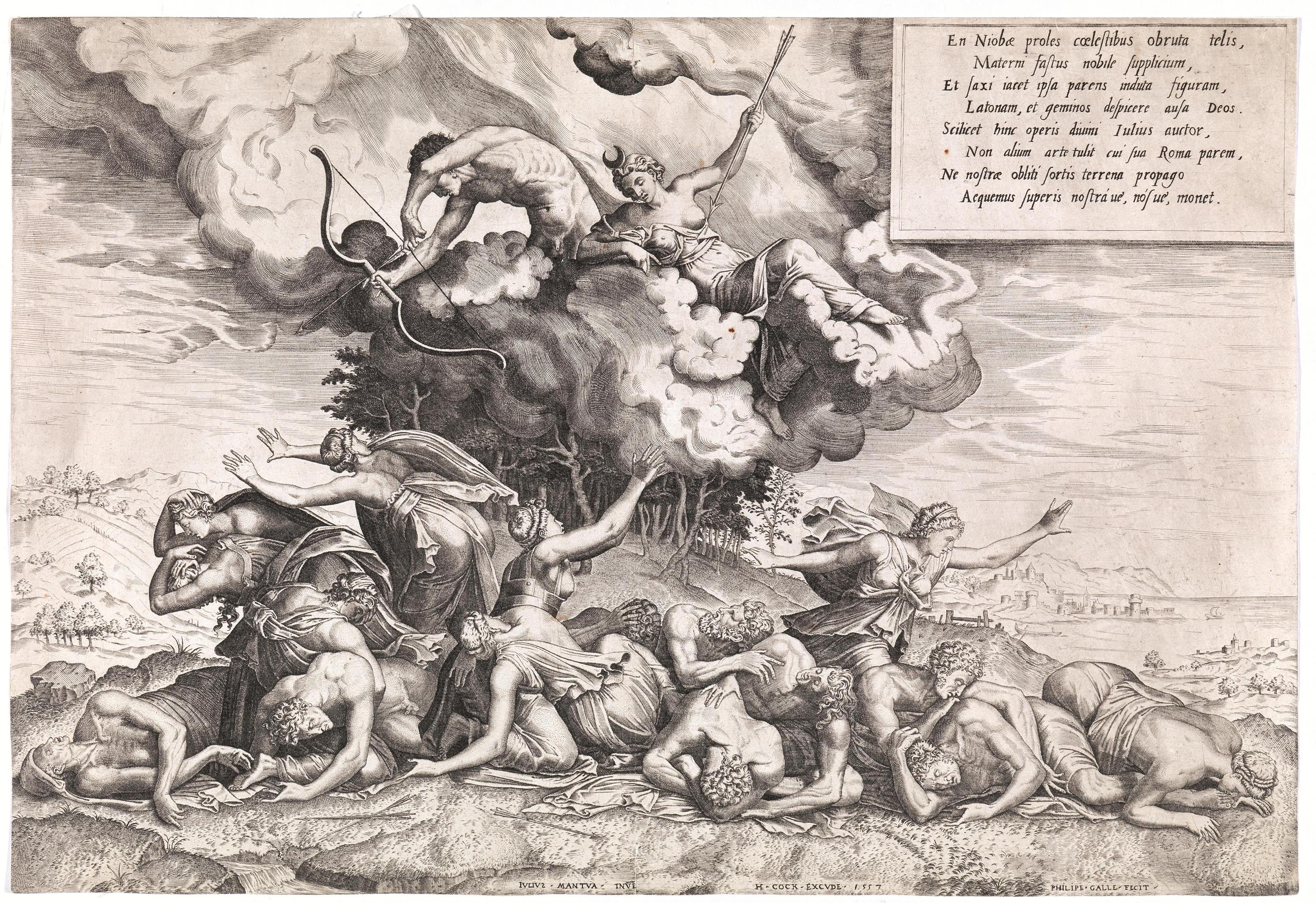 Galle, Philippe(Haarlem 1537 - Anversa 1612)APOLLO E ARTEMIDE UCCIDONO I...