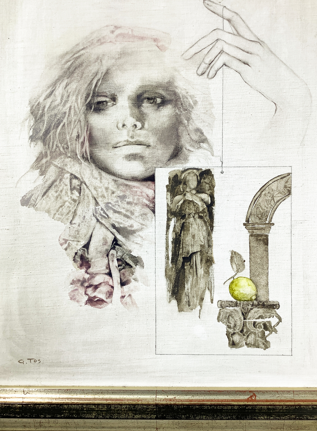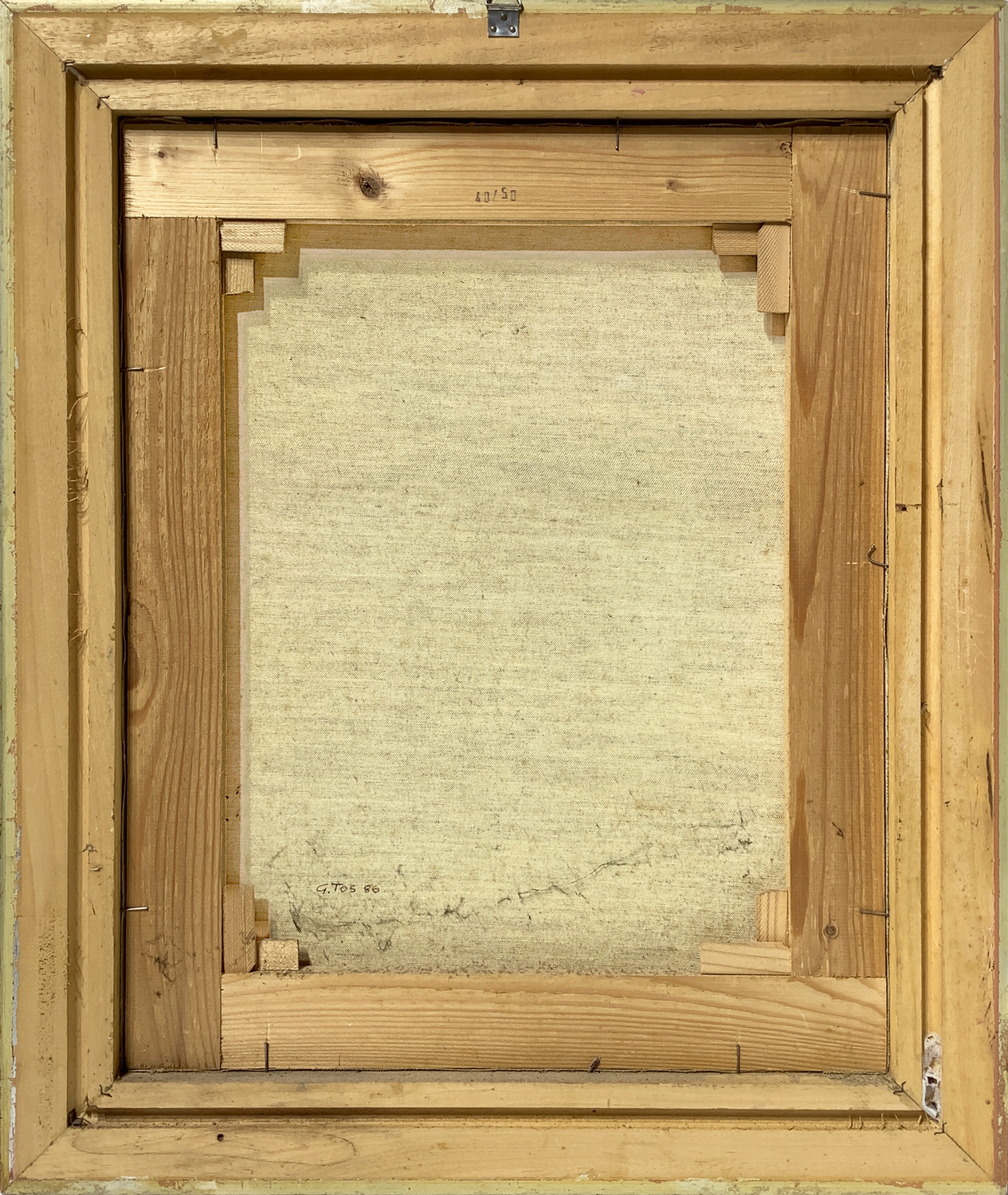 Olio su tela raffigurante “Taormina 86. Il ritorno dell'estate. Firmato in basso a sinistra Giglio Tos PierGiorgio ( Ivrea 1929- Novara 2012).