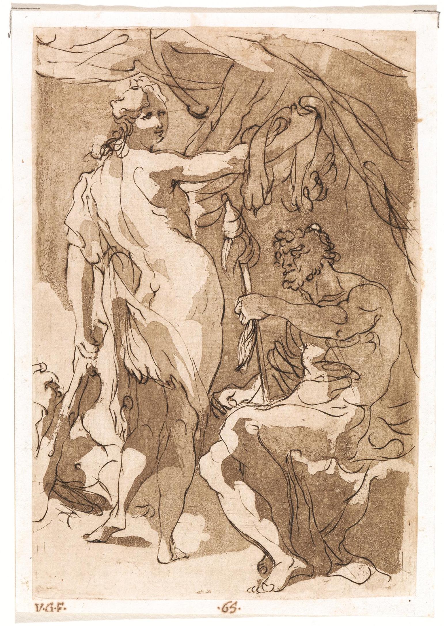 Bella impressione. Rifilata entro l’impronta della lastra, applicata a supporto di carta con un monogramma a penna “V.G.F.” ed il numero “65”, ottima conservazione.