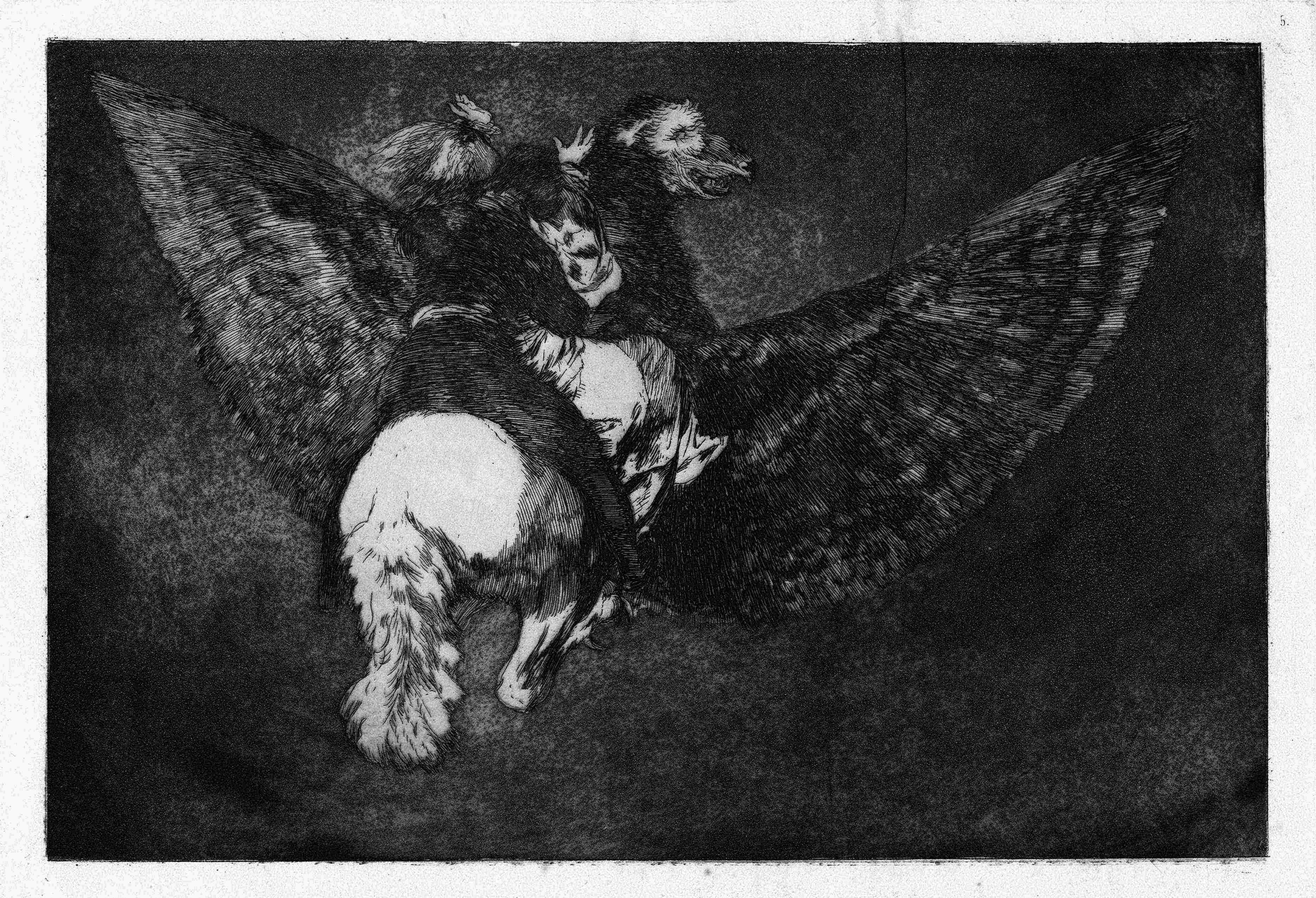 Quinta tavola dei Los Proverbios, serie di 18 incisioni. Esemplare della II edizione (di 9) stampata in pochissimi esemplari nell’ottobre 1875 dalla Calcografia per la Real Academia de Nobles Artes di Madrid. III stato su 3 dopo la numerazione.