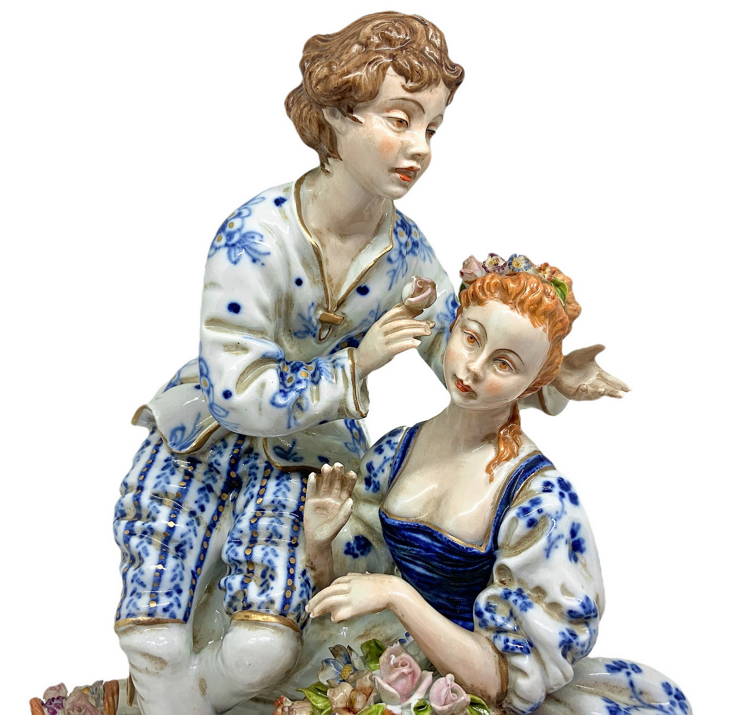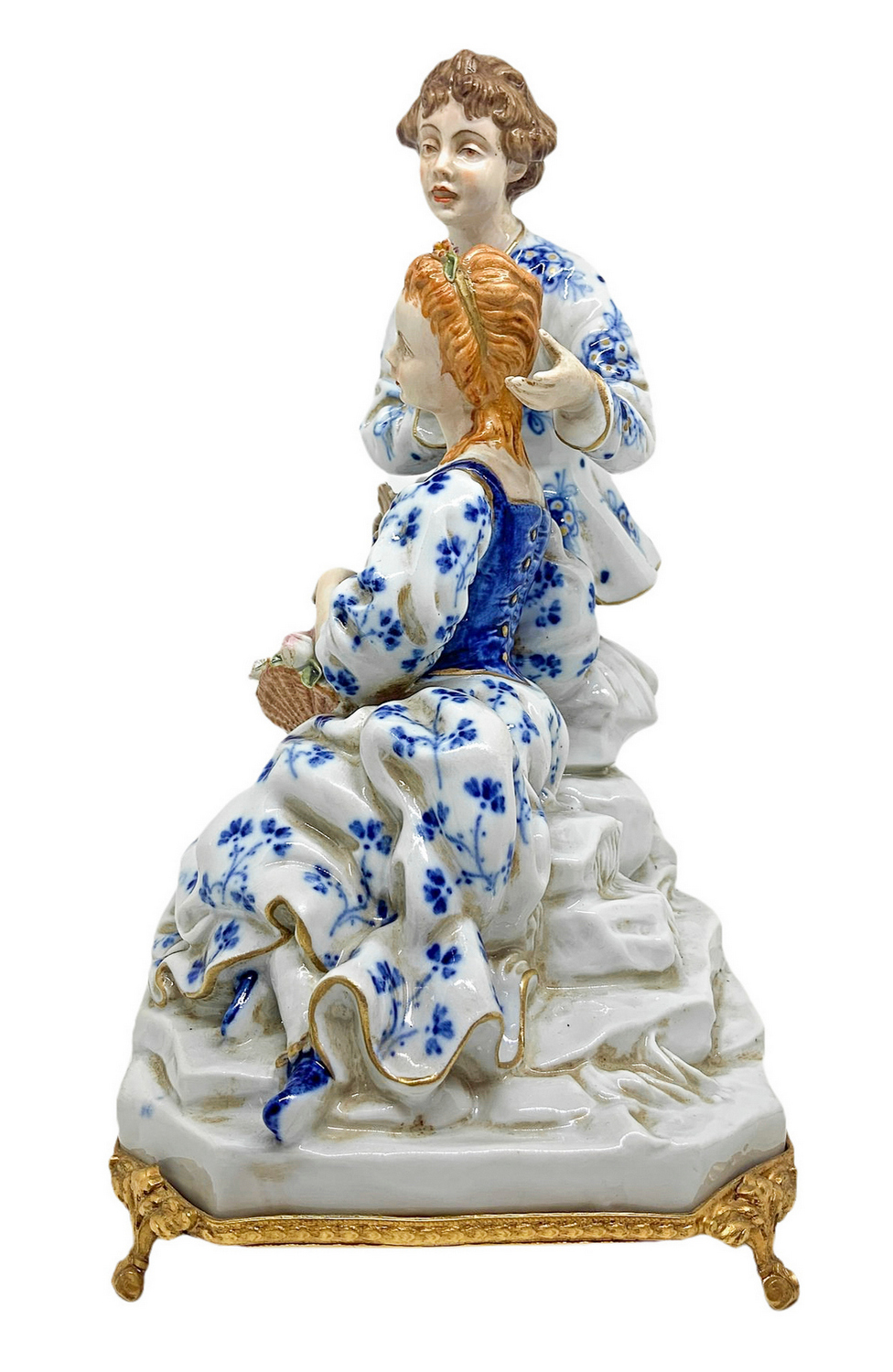 Capodimonte, Statuetta in porcellana raffigurante coppia galante con cesto....