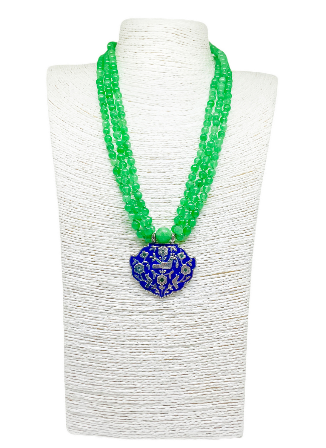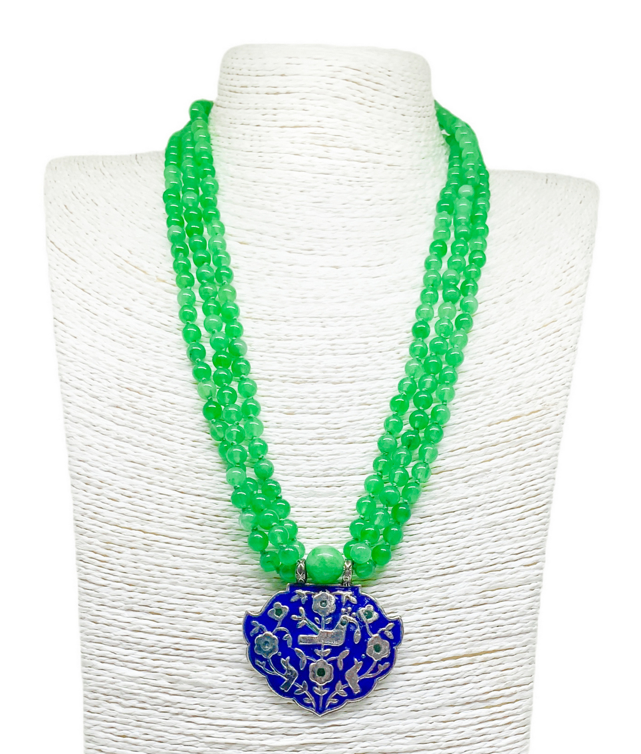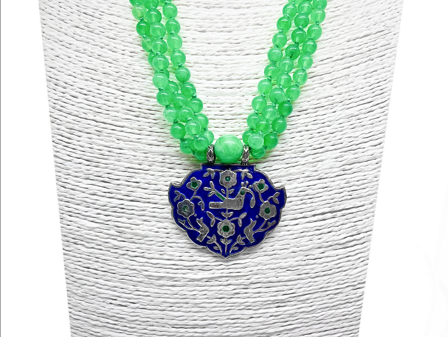 Lotto 642 | Collana con centrale argentato e tre fili di sferette di Giada, chiusura in...