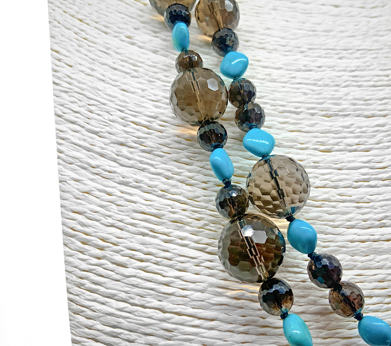 Collana con sfere sfacc, di QUARZO FUMÈ' mm 16, più elementi di TURCHESE....
