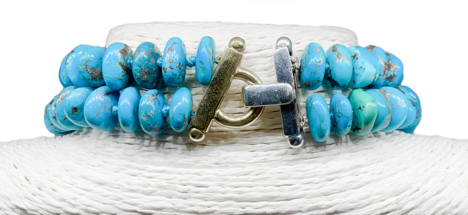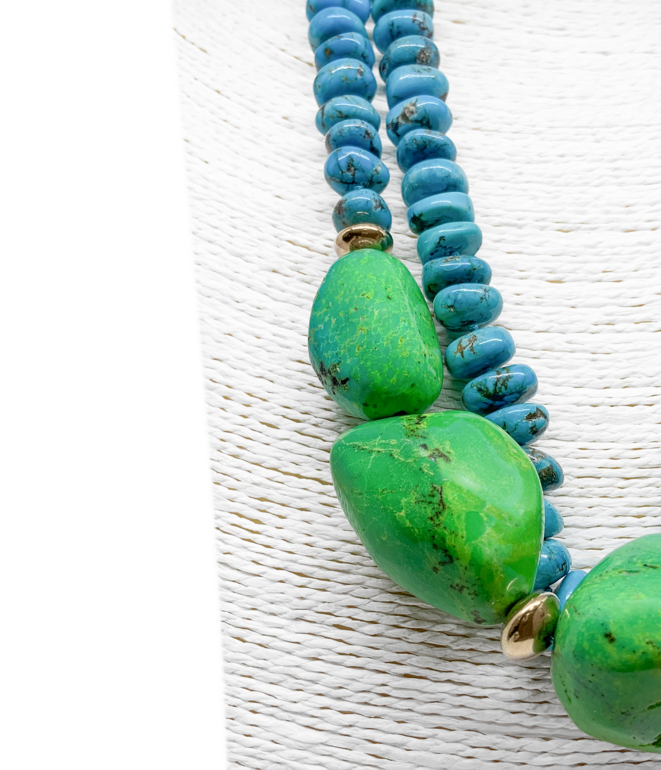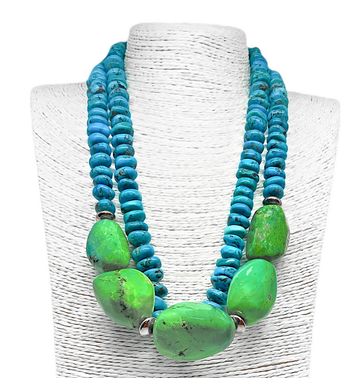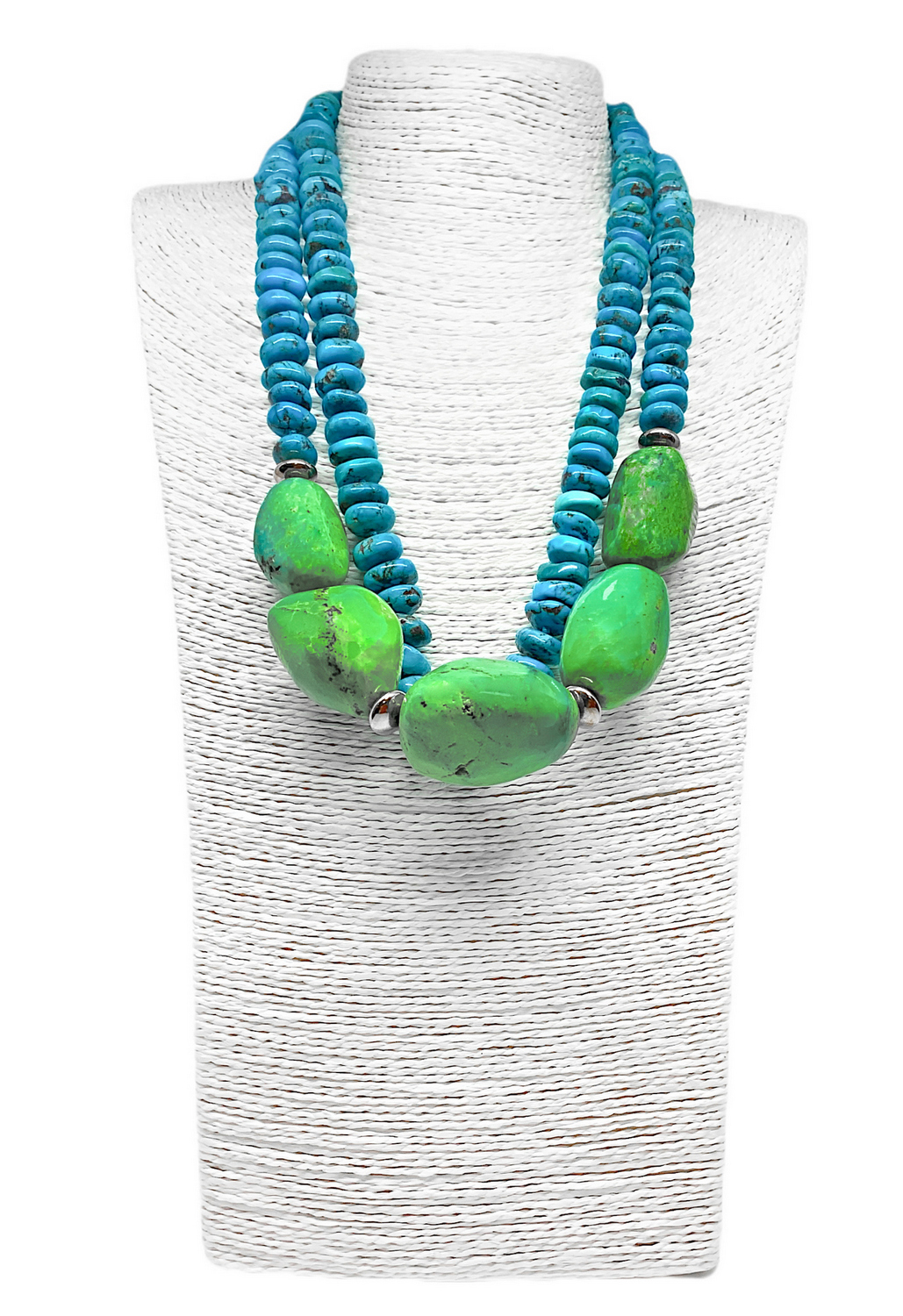Collana due fili turchese rondella con cinque ciottoli di turchese verde...