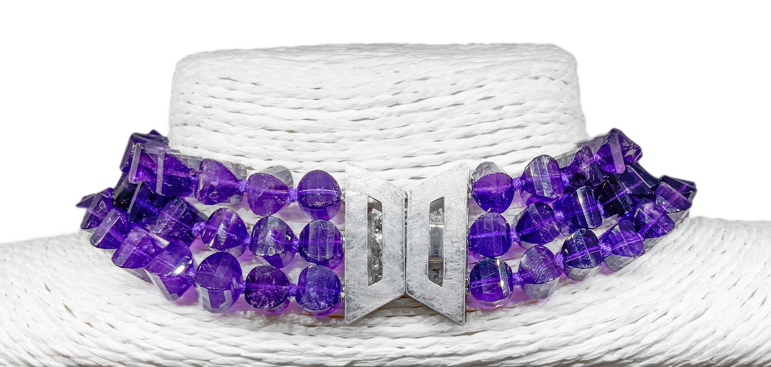 Collana tre fili di AMETISTA sfaccettata mm 8, con al centro gocce di...