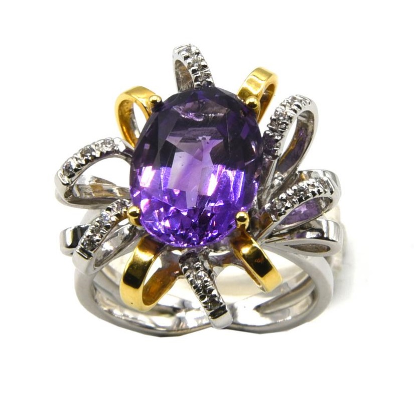 ANELLO BICOLORE CON AMETISTA E DIAMANTI