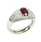 in oro bianco 18kt, con al centro rubino Birmano ovale di 0,84 ct circa e pavè di diamanti taglio brillante per 0,92 ct circa.