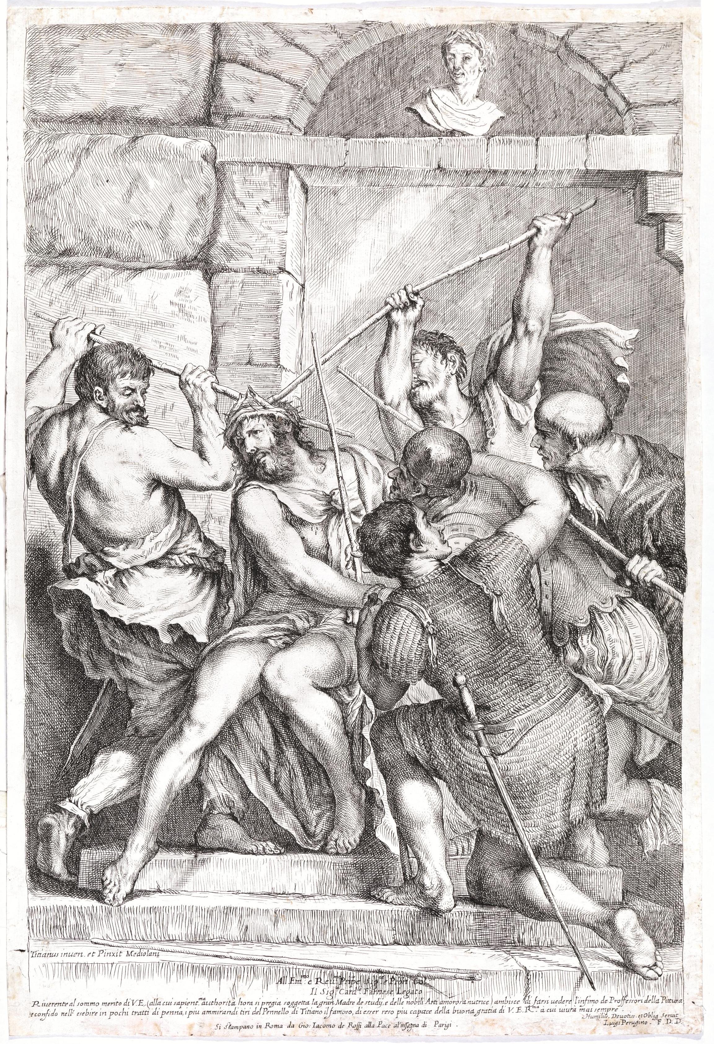 Firmata sulla lastra in basso a destra. Da un soggetto di Tiziano per la Chiesa di Santa Maria delle Grazie a Milano (oggi al Louvre). Stato unico conosciuto.