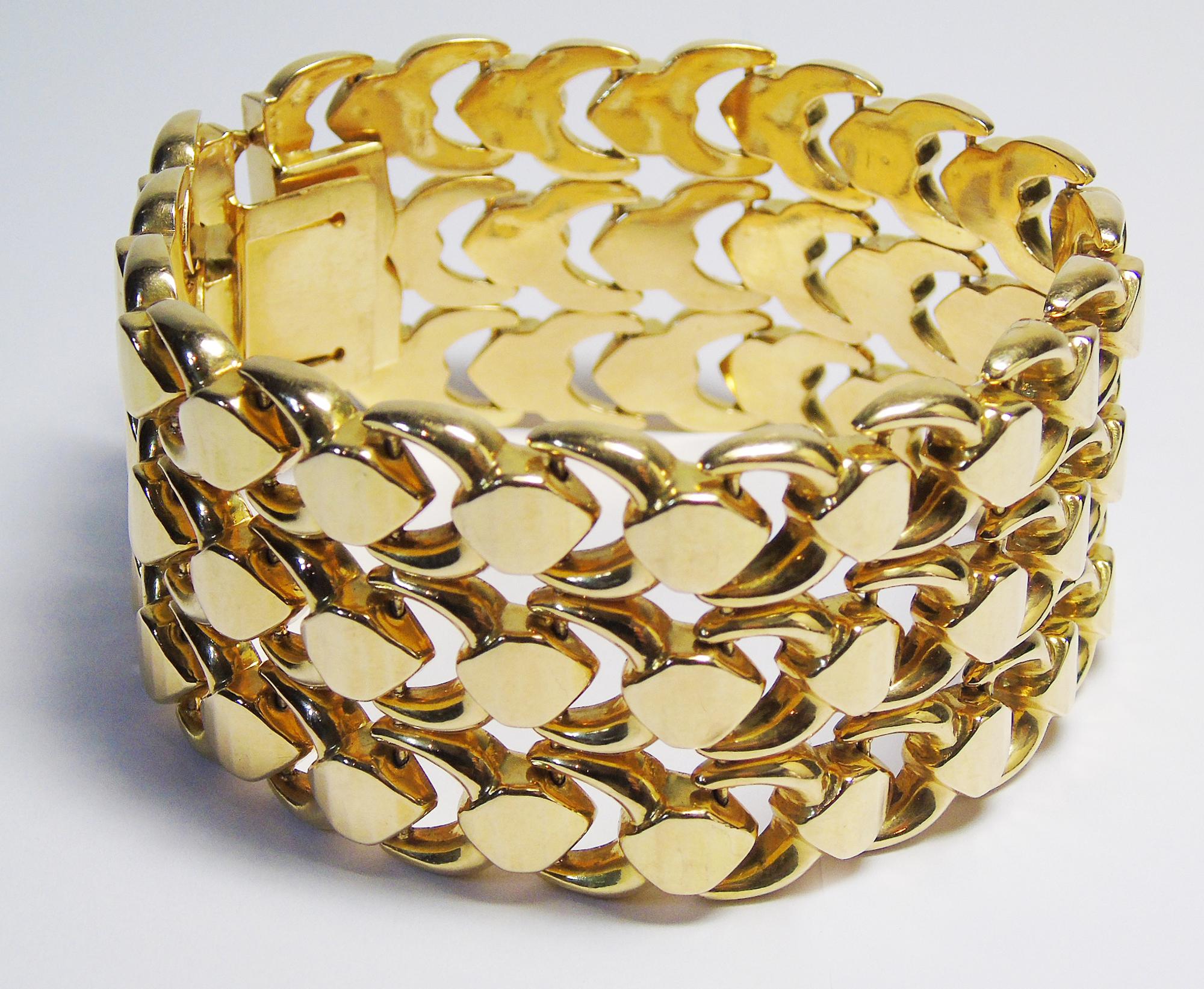 BRACCIALE IN ORO TRAFORATO in oro giallo 18 kt, 54,40 gr. cm 18x3,30
