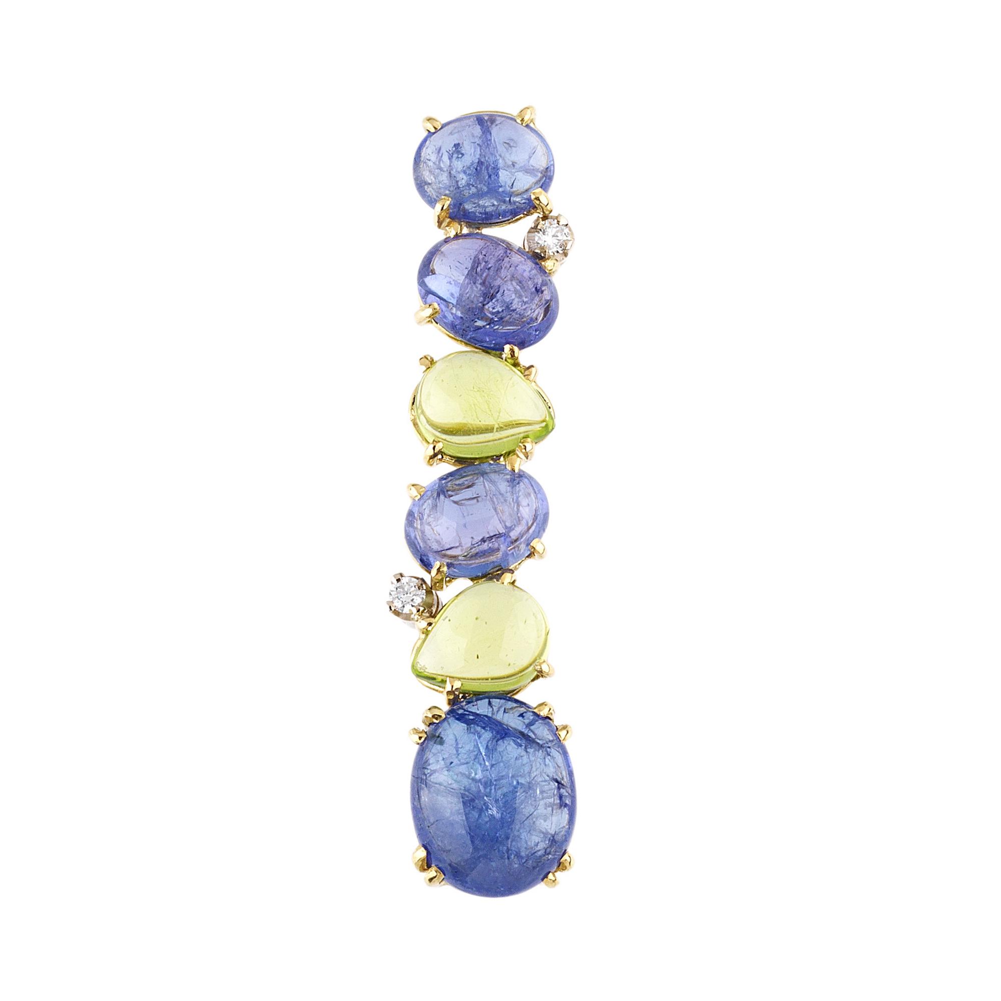 PENDENTE IN ORO GIALLO, PIETRE SEMIPREZIOSE E DIAMANTI