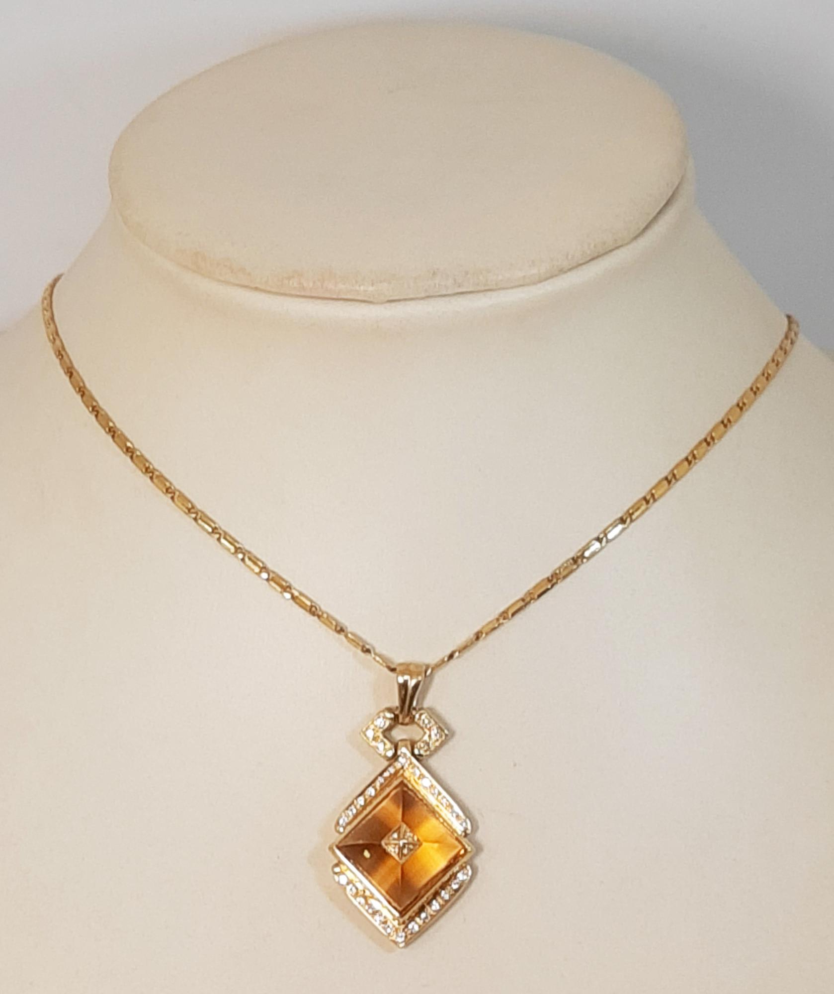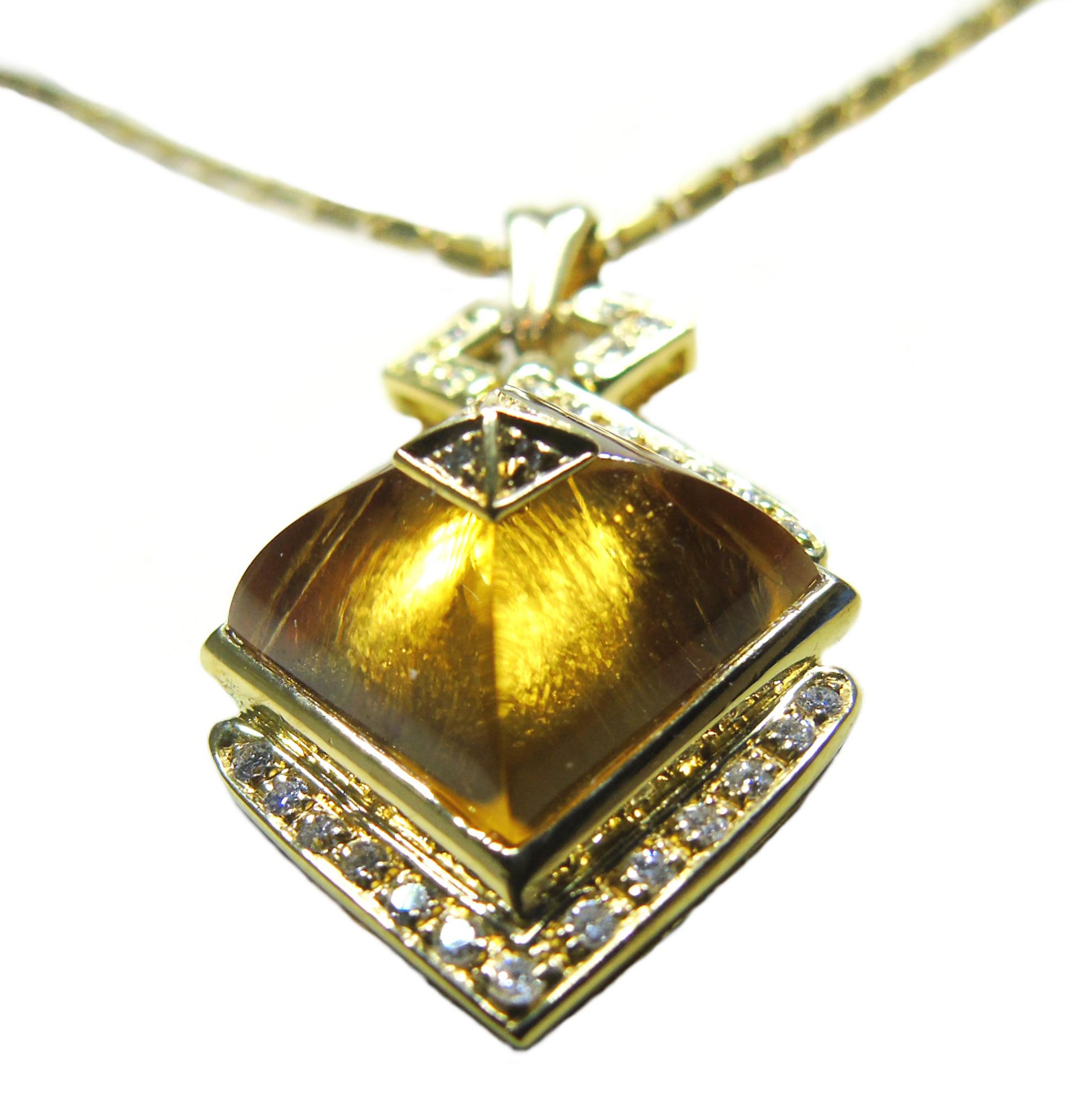 Pendente in oro 18kt, 8,50 gr., con quarzo citrino e diamanti per ct. 0,32 circa con girocollo in oro giallo 18kt, 8,00 gr.