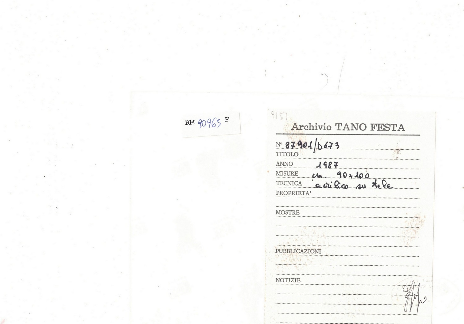 TANO FESTA (Roma 1938 - 1988 Roma) Pittura acrilica su tela, senza titolo. 1987, Studio Soligo Archive. Ha un autentico archivio Tano Party, N ° 87901 / D673