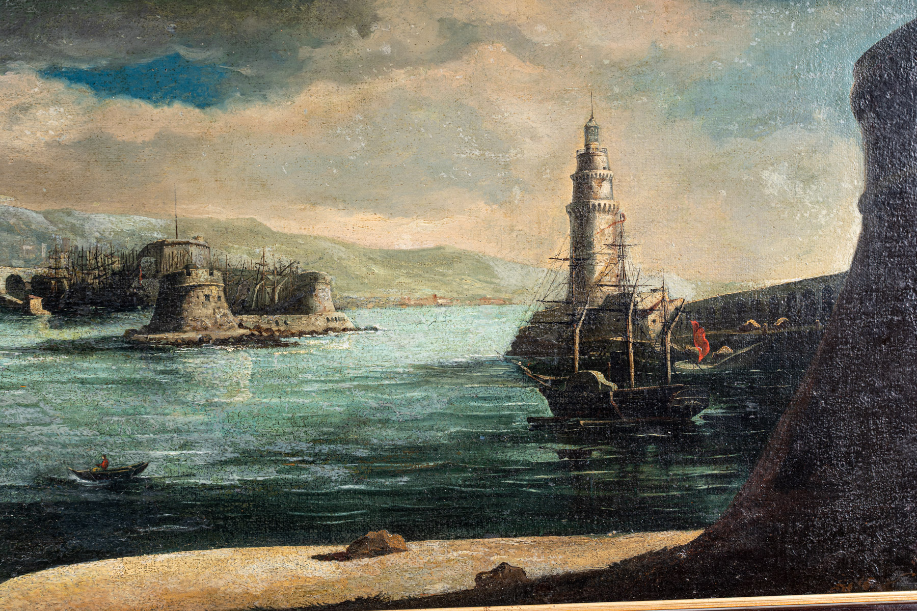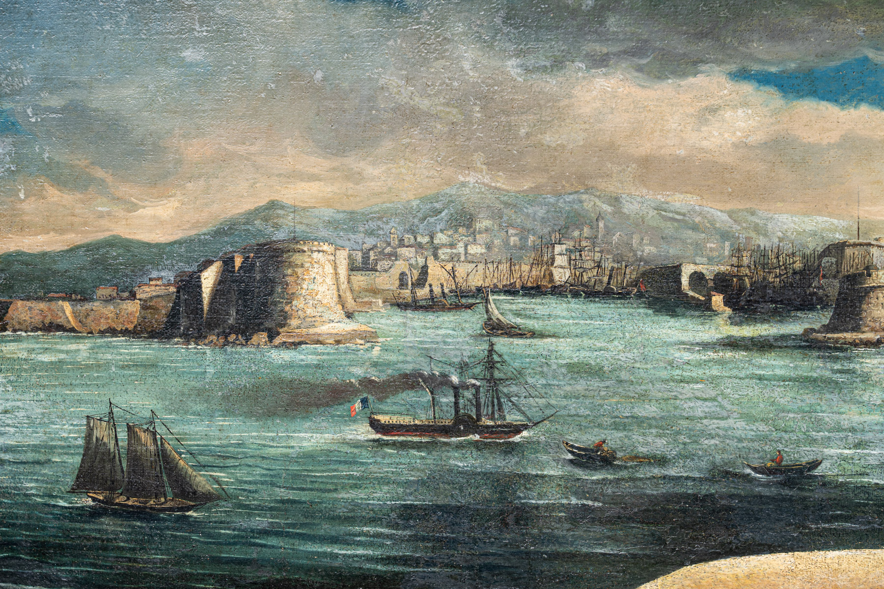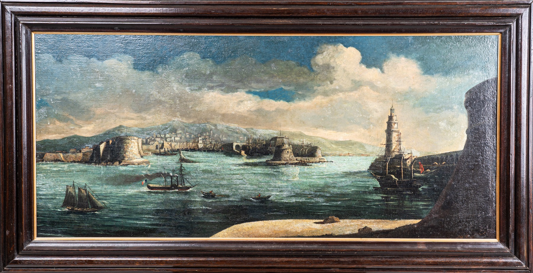 Scuola francese, Veduta del porto di Marsiglia fine XIX secolo olio su tela...