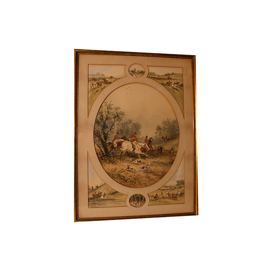Coppia di stampe inglesi con scene di caccia epoca '800 multipli colorati su...