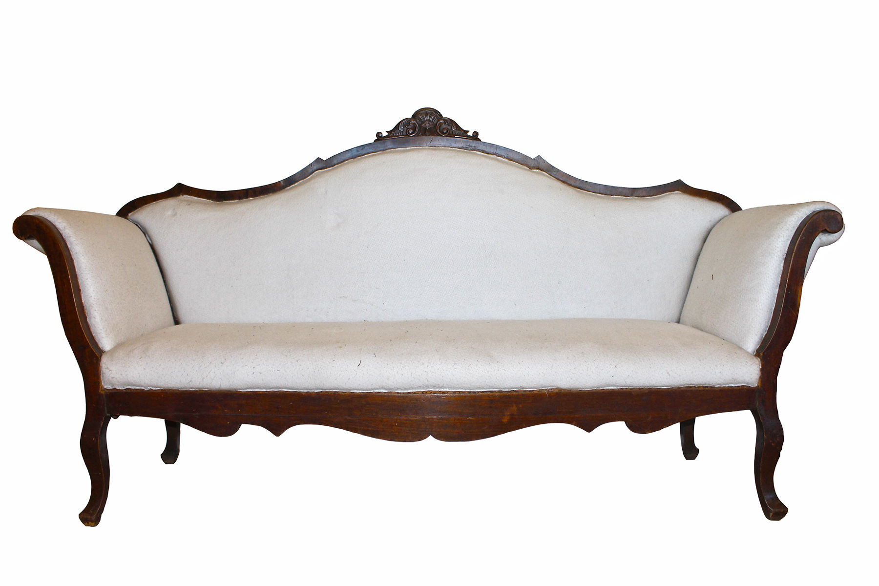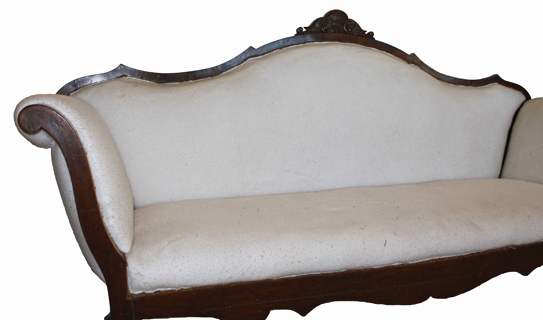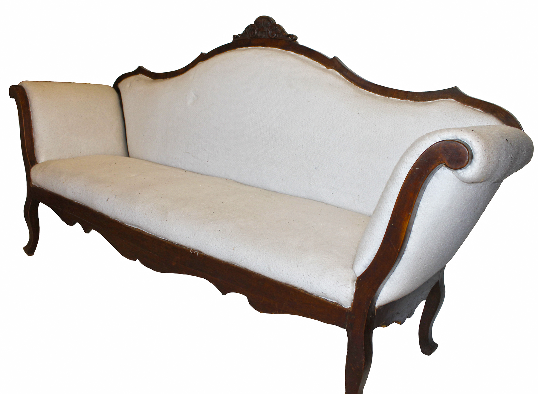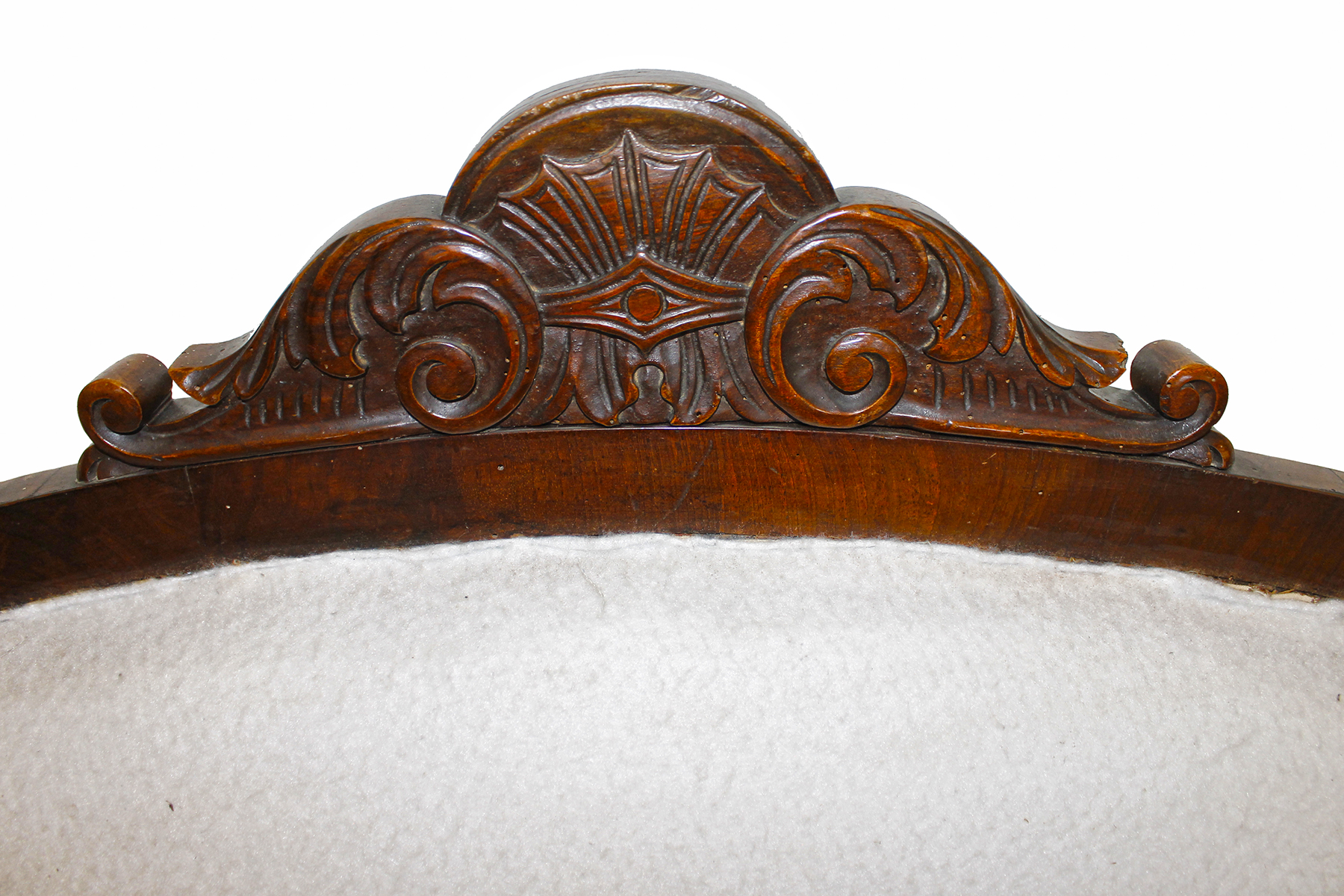 Divano Luigi Filippo metà XIX secolo in noce intagliato, spalliera sagomata...