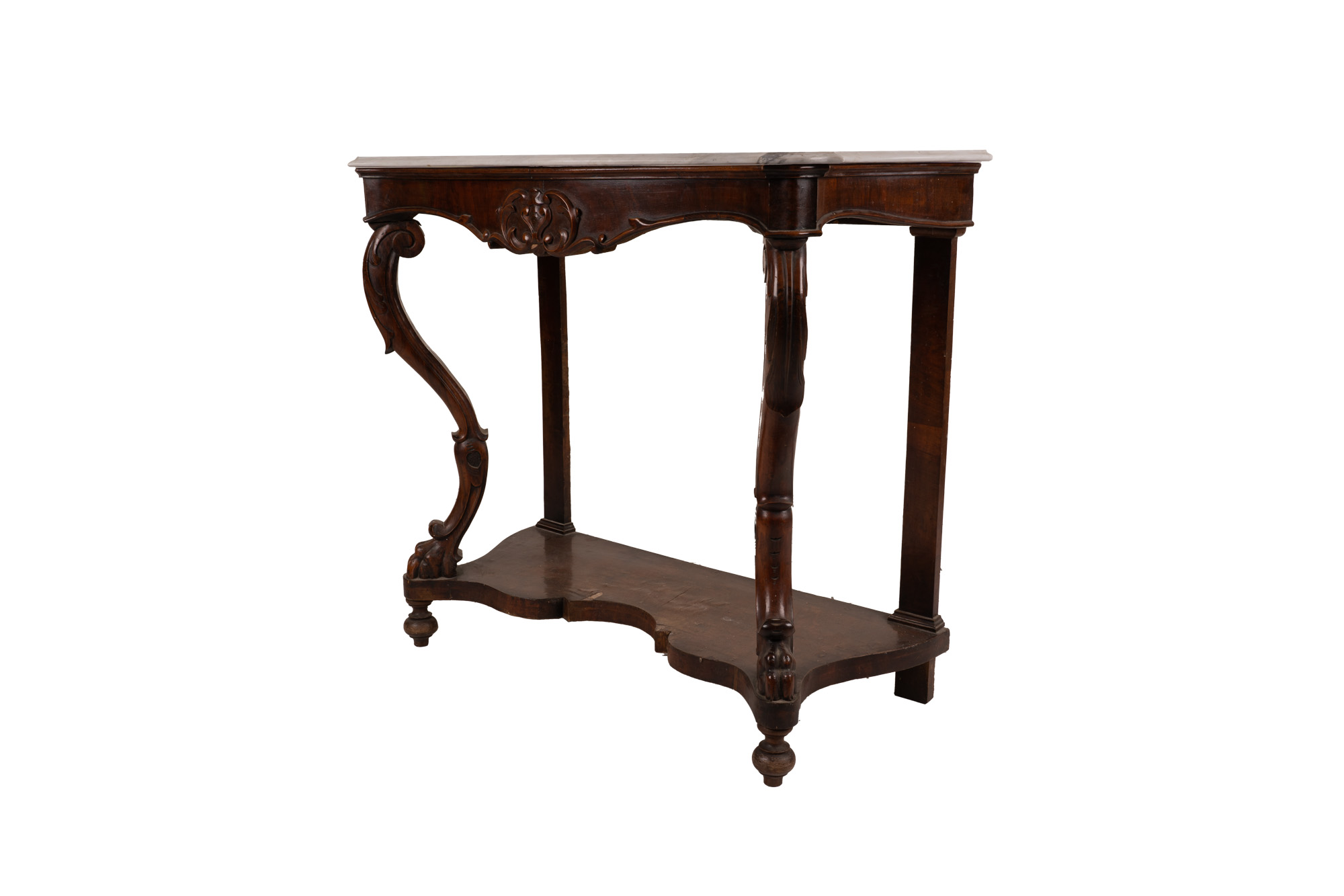 Consolle Luigi Filippo metà XIX secolo in noce intagliato, piano sagomato in...