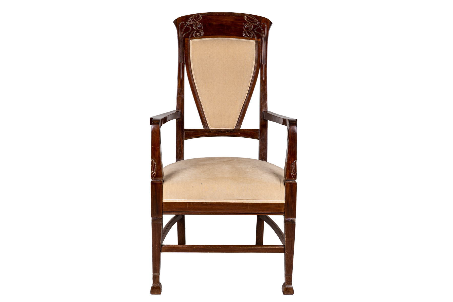 Poltrona Liberty in legno di ciliegio con decoro scolpito 1910 cm 117x61x50