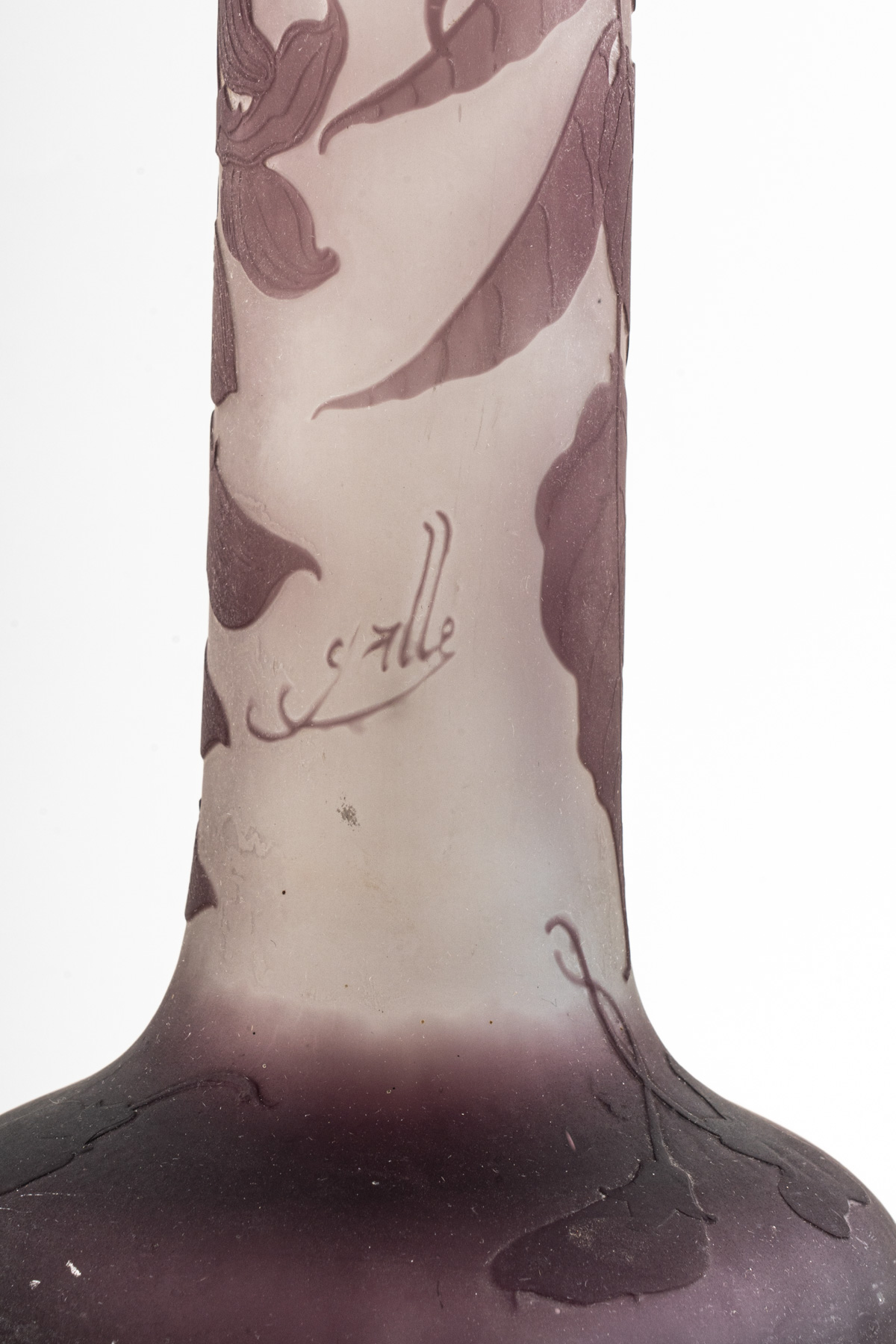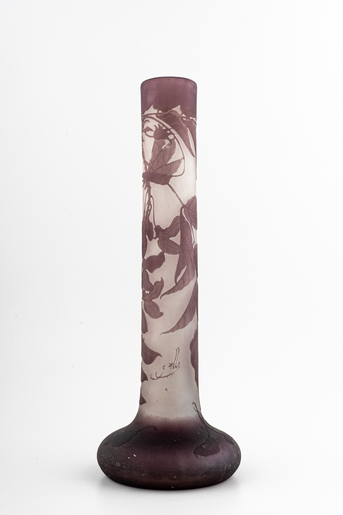 Emile Gallé (1846-1904), Vaso a bulbo 1910 in vetro doppio strato con decoro...