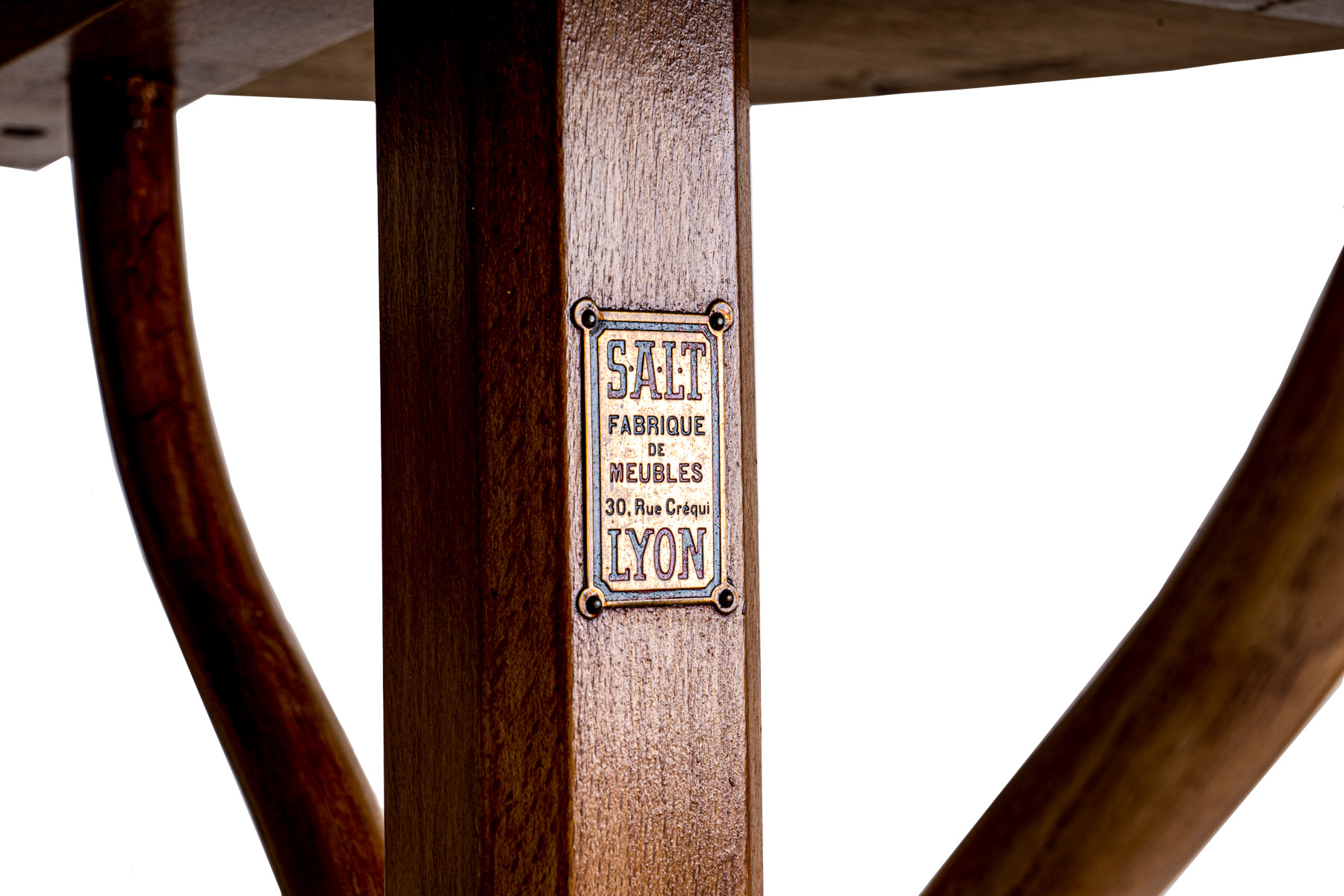 marcato con targhetta 'SALT - Fabrique de Meubles Lyon' sull'asse centrale del tavolo e siglato sotto ogni sedia