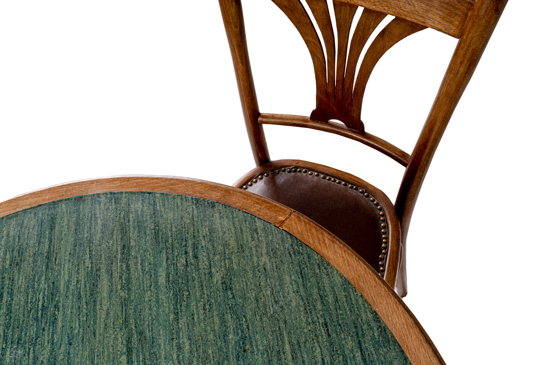 Set tavolino da bistrot e 4 sedie in legno di faggio curvato Lione anni '20...