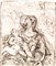 Penna e inchiostro bruno e tracce (al verso) di matita rossa su carta vergellata con filigrana “Croce su tre monti”. mm 118x101. Al verso: variante dello stesso soggetto.
